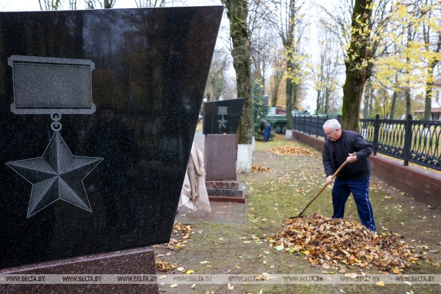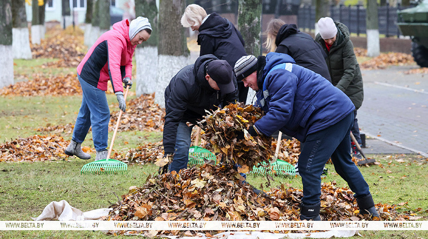 С самого утра в Шклове кипит работа - несмотря на дождь, практически весь город вышел на республиканский субботник. Убирают листву на улицах и в парке, приводят в порядок дворовые территории и места массового отдыха людей. Самое пристальное внимание - мемориалам и памятным местам.