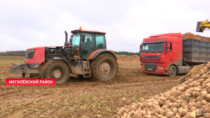 Прыбраць цукровыя буракі на палях гаспадаркі «Магілёўскі лянок» спяшаюцца да першых замаразкаў