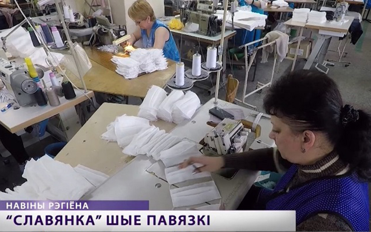 Буйныя прадпрыемствы і невялікія вытворчасці Магілёўскай вобласці адрэагавалі на патрэбнасць часу і шыюць марлевыя і аднаразовыя павязкі. Напрыклад, Бабруйская «Славянка» штодня вырабляе 200 тысяч масак.