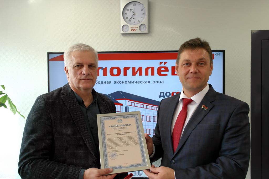 Адміністрацыяй свабоднай эканамічнай зоны «Магілёў» зарэгістраваны новы рэзідэнт –ТАА «Дуна пелет». Інвестыцыйны праект, які рэалізуецца з удзелам латвійскага капіталу, прадугледжвае стварэнне экспартаарыентаванай вытворчасці драўляных пелет (гранул). Плануецца арганізаваць каля 20 новых працоўных месцаў.