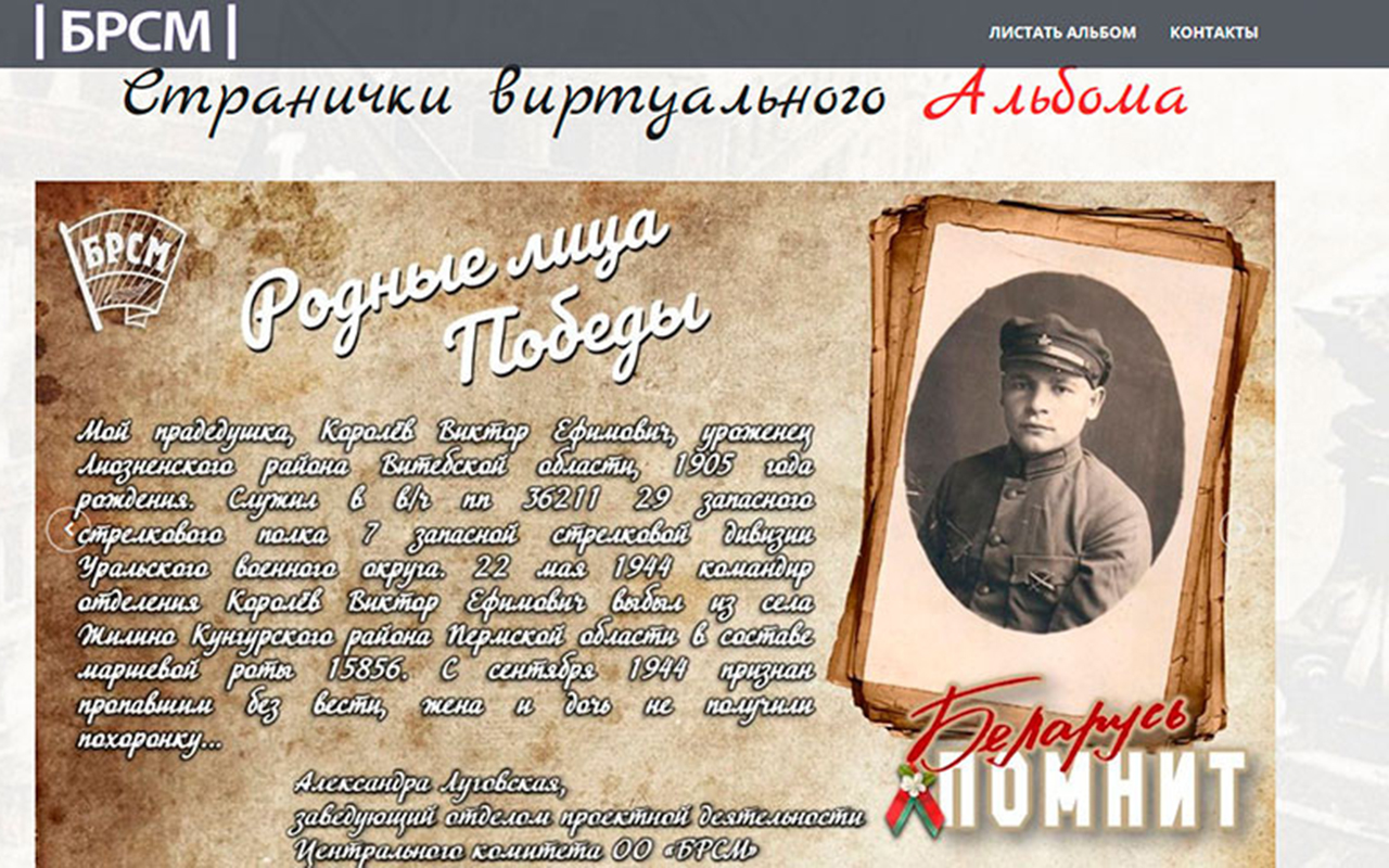 БРСМ запусціў вэб-версію альбома «Беларусь памятае. Памятаем кожнага»