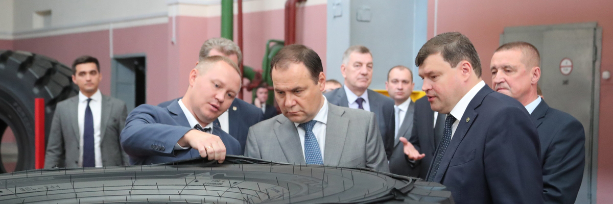 Учора прэм’ер-міністр Раман Галоўчанка з рабочай паездкай наведаў Магілёўскую вобласць. У прыватнасці, кіраўнік Урада азнаёміўся з вытворчасцю буйнагабарытных шын на прадпрыемстве «Белшына». Нагадаем, тут рэалізуюцца інвестыцыйныя праекты па стварэнні вытворчасцей суцэльнаметалакордных шын дыяметрам да 63 цаляў і шын дыяметрам 25–29 цаляў.