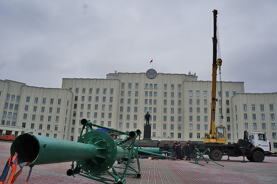 В Могилеве на площади Ленина начали устанавливать главную новогоднюю елку области. Ее основой станет металлическая конструкция, состоящая из сборных модулей.