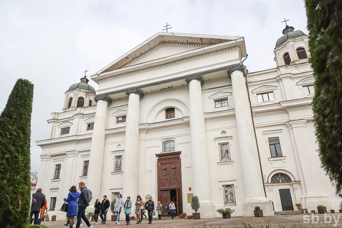 Большой, красивый, с богатой историей и важным современным статусом. Этот католический храм, хоть и находится в самом центре Могилева, внимание привлекает не сразу. Чтобы разгадать его вековые тайны, сначала нужно найти к нему путь, минуя другие здания и яркие вывески.