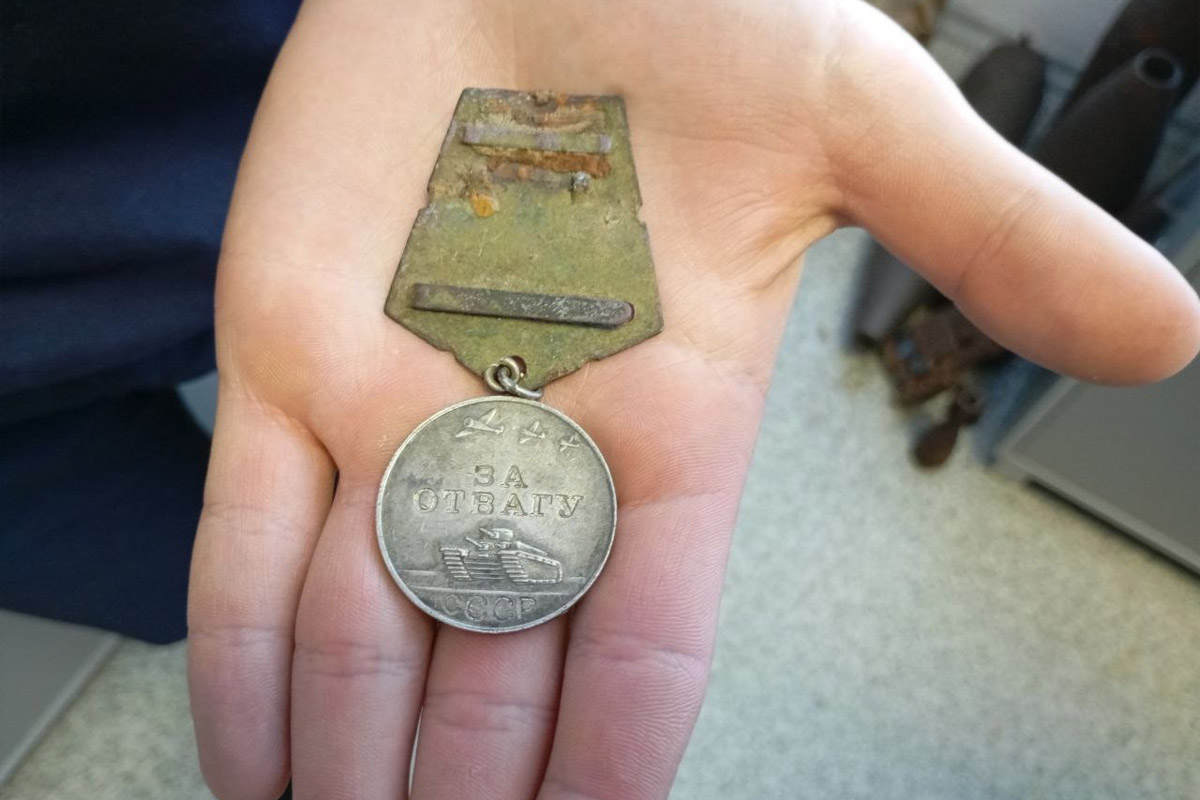 Боевую награду директор Романовичской средней школы Могилевского района Олег Пусков обнаружил в Чаусском районе у деревни Драчково. Отправившись в лес за грибами, заметил во мху то, на что другой любитель «тихой охоты» не обратил бы внимания, — поржавевший круглый предмет. Но Олег Владимирович — опытный поисковик, в этом движении уже более 30 лет, создал при СШ отряд «Память», который входит в состав областного историко-патриотического поискового клуба «Виккру».