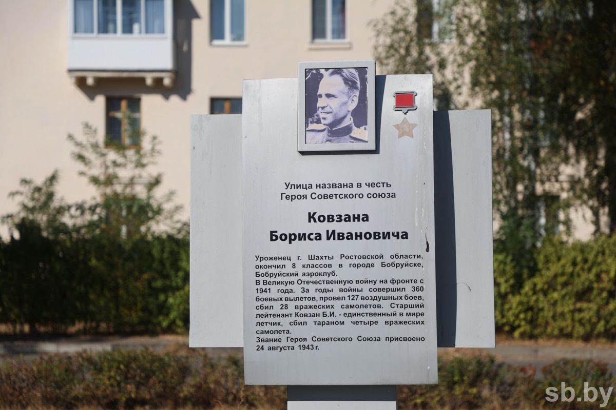 Имя мастера воздушного тарана Бориса Ковзана в Бобруйске носят улица и школа