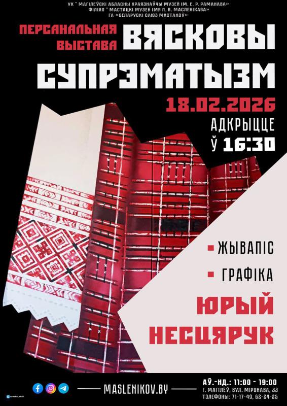 В культурной жизни Могилева 18 февраля состоится важное событие: в Художественном музее имени П.В. Масленикова откроется персональная выставка Юрия Нестерука «Вясковы супрэматызм». Выставка будет работать до 29 марта.