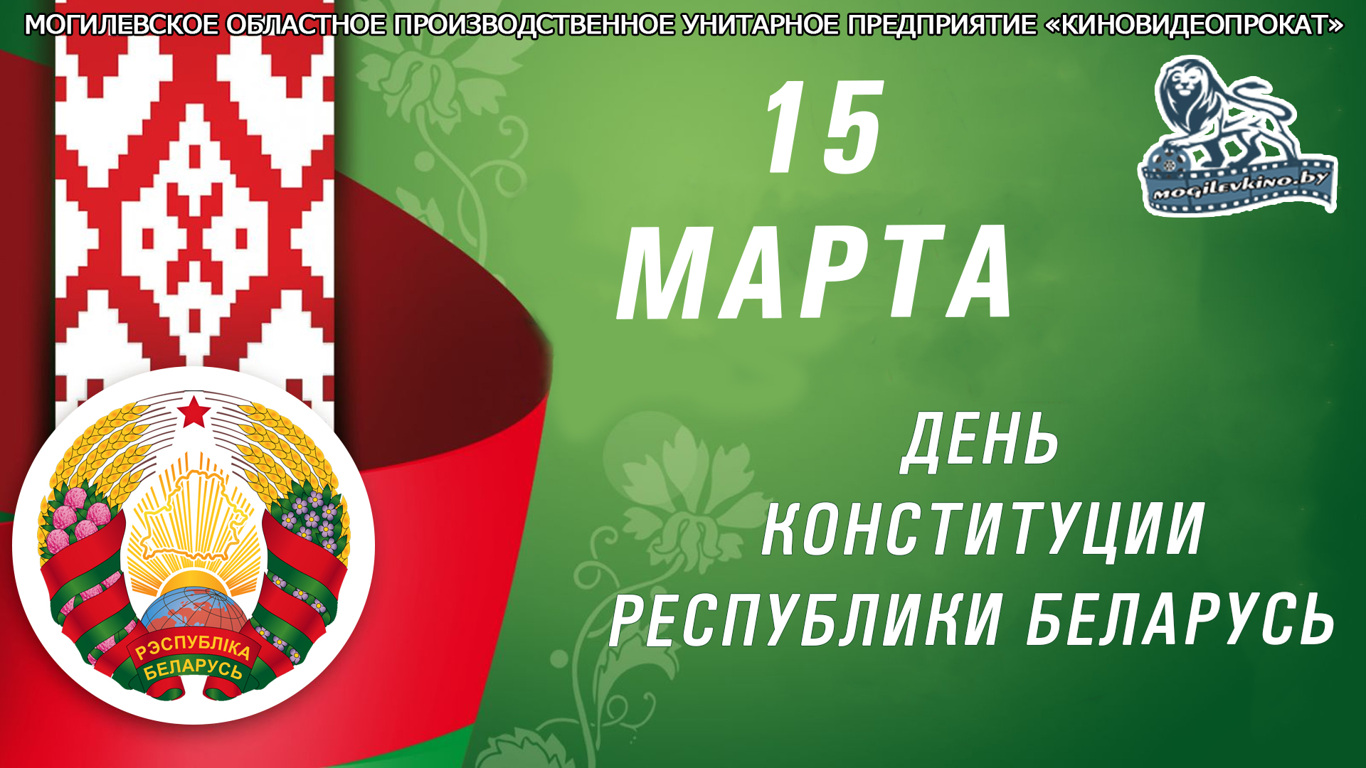 Мероприятия, приуроченные ко Дню Конституции Республики Беларусь, пройдут в могилевских кинотеатрах 15-16 марта. Об этом сообщили в Могилевском государственном предприятии «Киновидеопрокат».