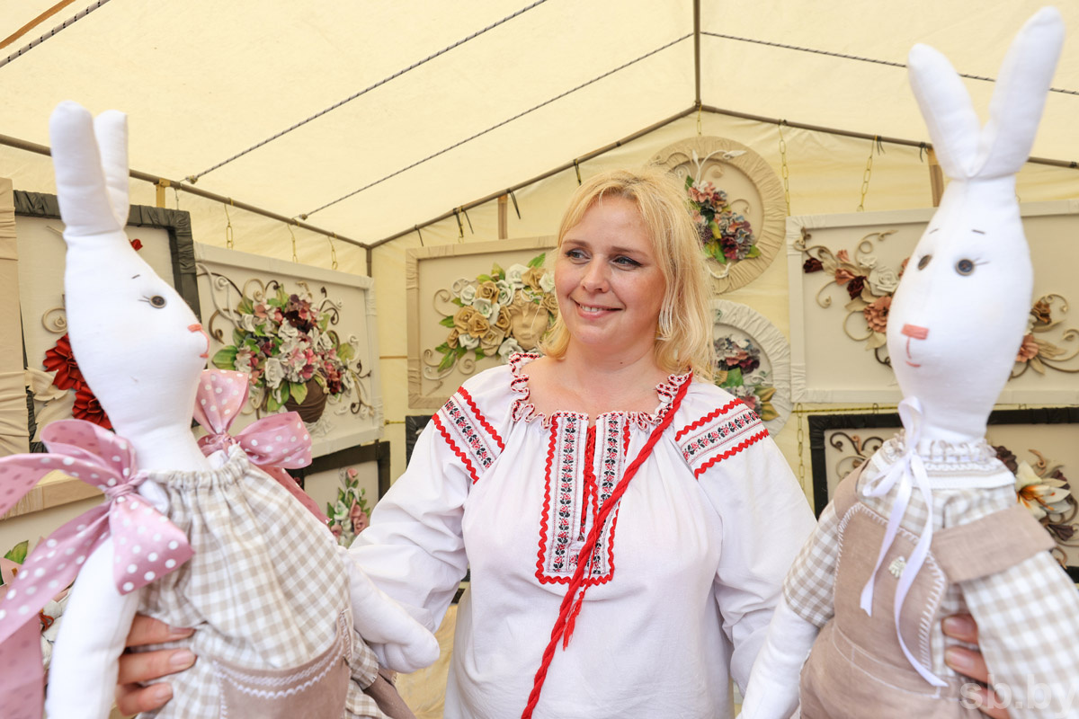 В могилевском сквере имени Герцена, что за областным драмтеатром, сегодня особенно оживленно. Здесь в рамках празднования Дня города и Дня Независимости собрались десятки ремесленников со своими рукотворными шедеврами. Изделия из дерева, глины, льна, шерсти, тканые рушники, рубашки-вышиванки, украшения ручной работы… Покупателей много и в первую очередь они разбирают изделия с белорусской символикой: банты-заколки, венки, броши из васильков и ромашек, картины, на которых – родные сердцу виды: могилевская Ратуша, драмтеатр, храм в Подниколье…