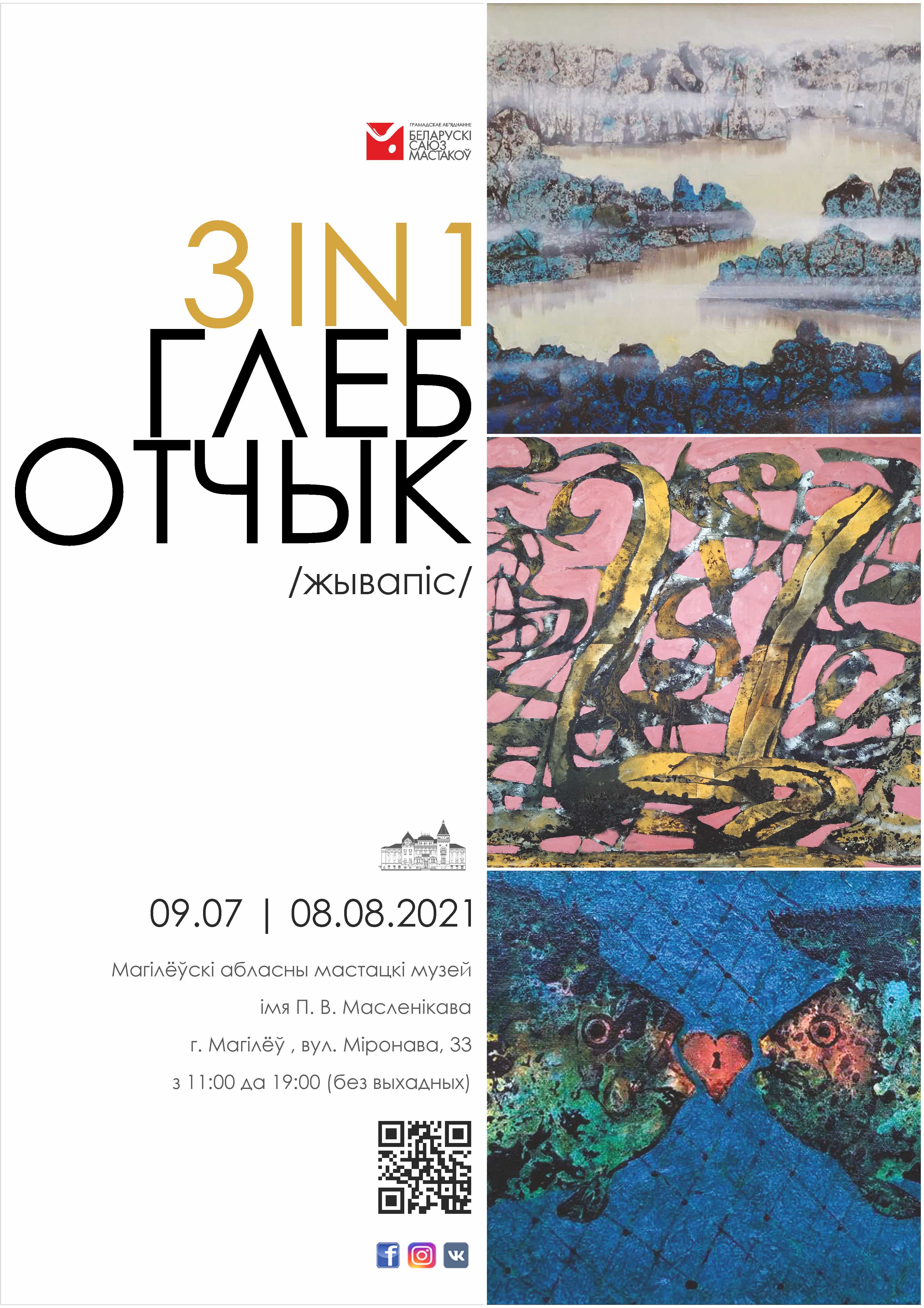 В Могилевском областном художественном музее имени П.В. Масленикова 9 июля откроется выставочный проект художника-монументалиста, председателя Белорусского союза художников Глеба Отчика «3 in 1».