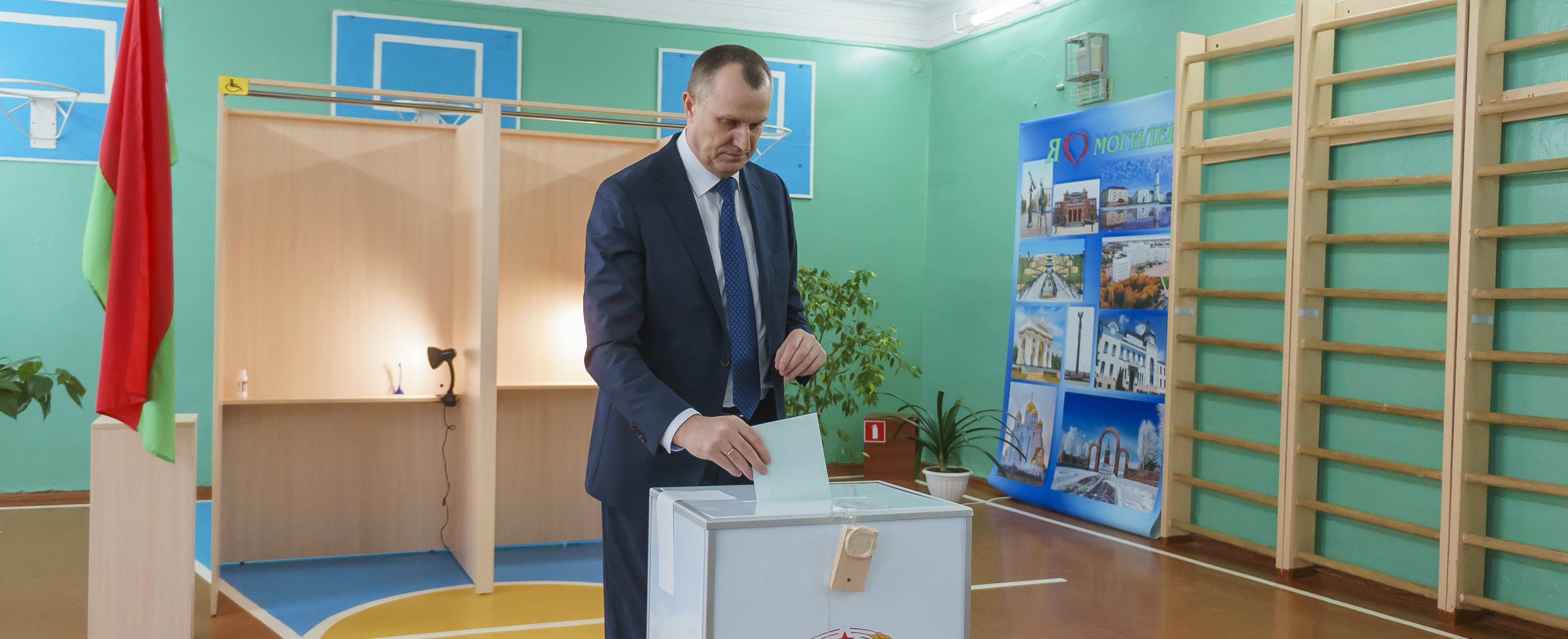 Председатель областного исполнительного комитета Анатолий Исаченко дал старт досрочному голосованию в Могилевской области, первым отдав свой голос на участке №57, расположенном в средней школе №1 города Могилева.