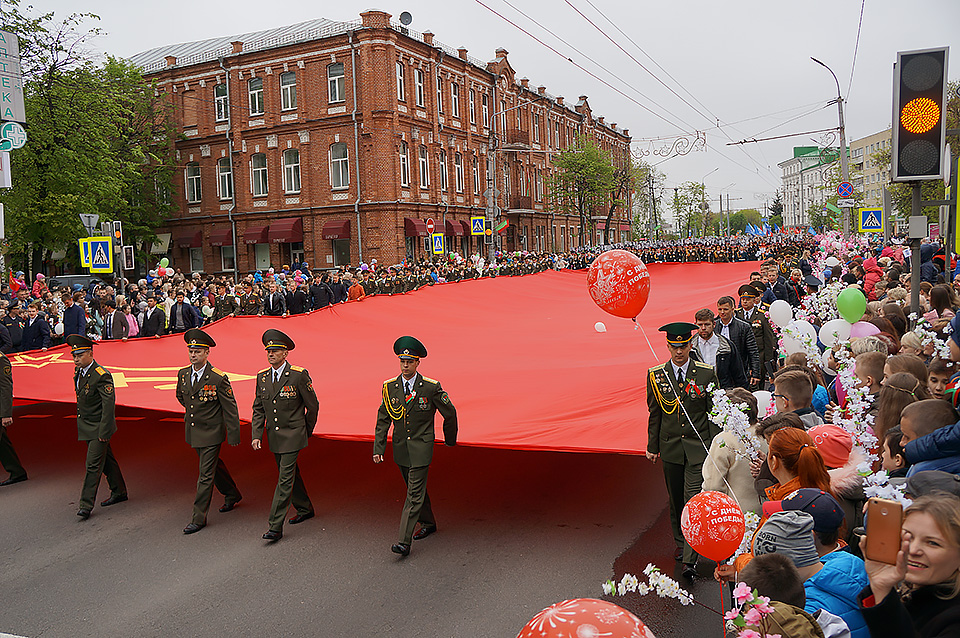 День Победы в Могилеве начнется на площади Славы в 10.00 с торжественного мероприятия «В сердцах поколений - Великая Победа!». Здесь пройдет акция «Беларусь помнит» и молодежная патриотическая акция «Гордимся Родиной своей», посвященная Дню Государственного флага и Государственного герба Республики Беларусь.