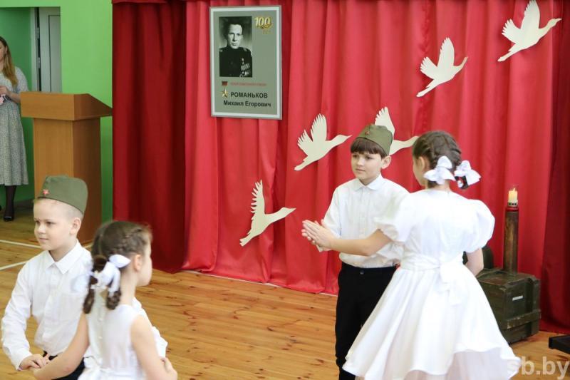 — Восемьдесят лет живем под мирным небом, и вот сейчас опять просыпаются темные силы. Идет борьба за умы молодежи. Наша школа выбрала себе ориентир — и этим героем стал наш земляк, Герой Советского Союза Михаил Романьков. Следуем девизу «Имени героя будем достойны!». На примере Михаила Егоровича и других героев воспитываем у молодого поколения чувства любви к своей Родине, интереса и уважения к историческому прошлому белорусского народа, культурному наследию. Формируем активную гражданскую позицию, ответственность и готовность к исполнению своего гражданского долга перед Отечеством.