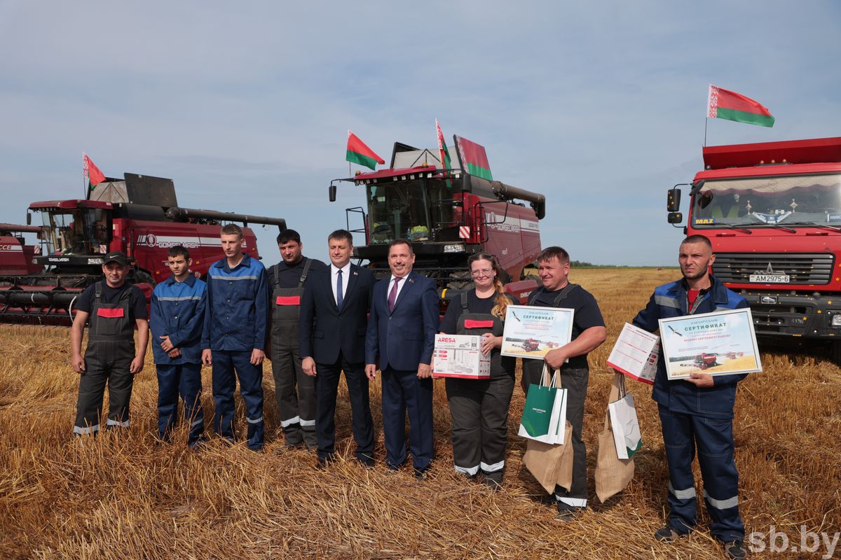 Оценить условия на полевых работах, ход уборочной кампании и отметить огромный вклад хлеборобов в обеспечение стабильности и благополучия общества — парламентарии по поручению председателя Совета Республики Национального собрания Натальи Кочановой принимают активное участие в моральном и материальном поощрении героев жатвы. Тем более профессиональная деятельность некоторых из них связана с аграрной отраслью.