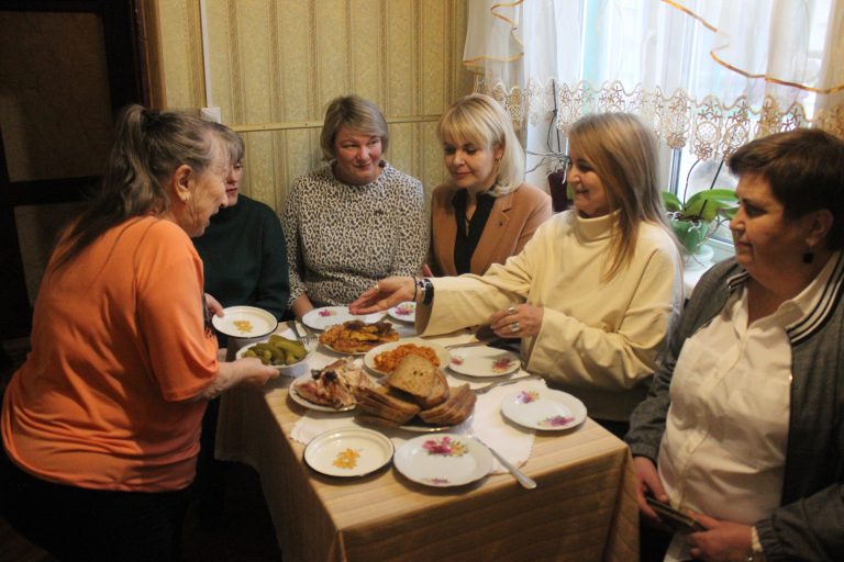 В рамках акции «От всей души» заместитель председателя Могилевского областного объединения профсоюзов Татьяна Лаукманис и инспектор отдела по работе с профсоюзными организациями Наталья Тимонова навестили с подарками одиноко проживающую пенсионерку Лидию Шалоник — одну из самых деятельных бабушек в Круглом.