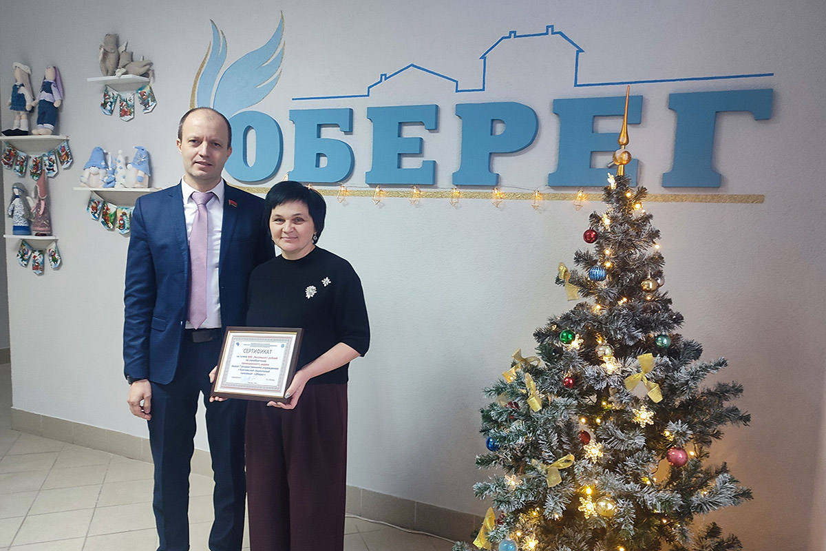 Председатель Могилевской областной организации Белорусского профсоюза работников местной промышленности и коммунально-бытовых предприятий Павел Жуйков посетил Кричевский социальный пансионат «Оберег» и вручил руководителю учреждения Татьяне Соловьевой сертификат на оказание безвозмездной спонсорской помощи, в частности на приобретение проекционного экрана.