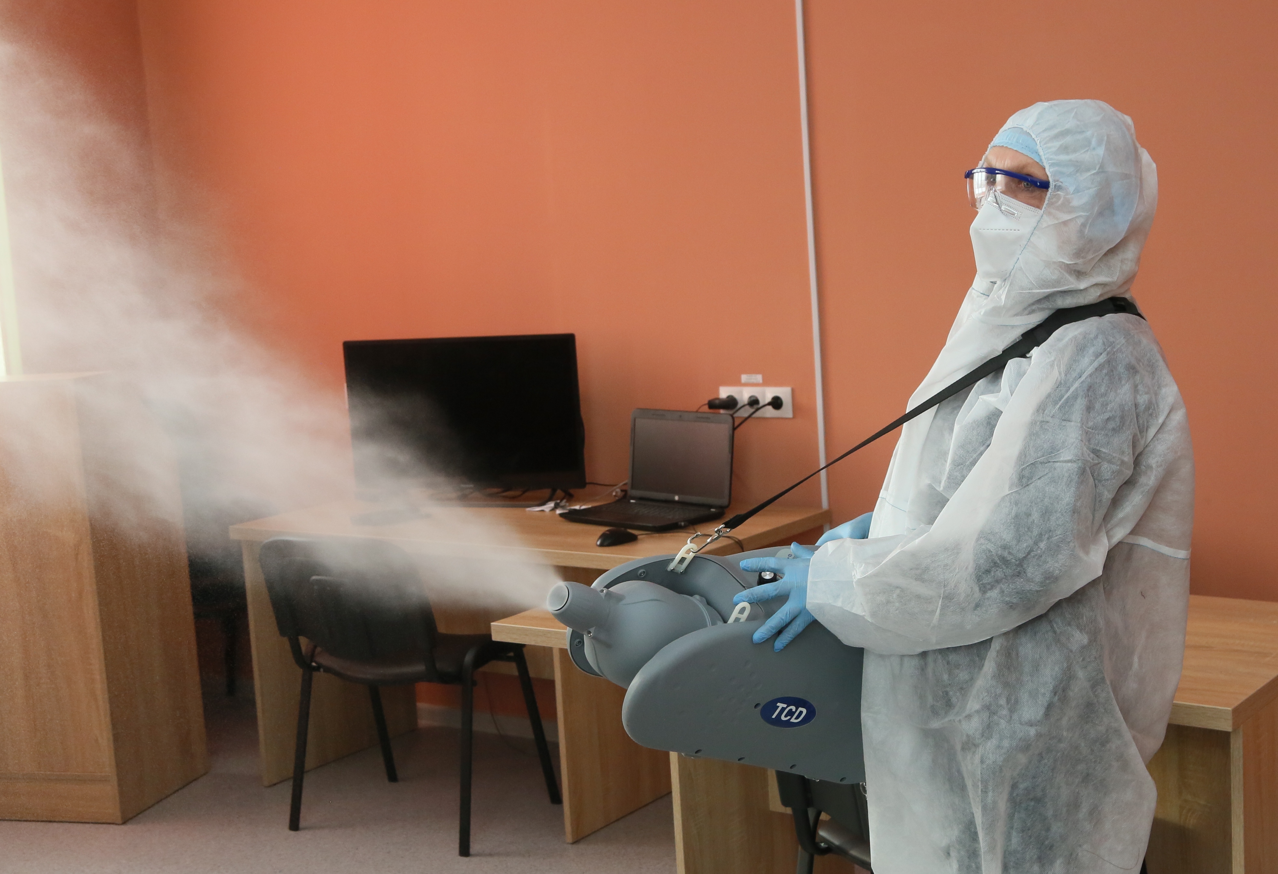 В Шклове для дезинфекции помещений и общественных мест стали использовать генераторы холодного тумана