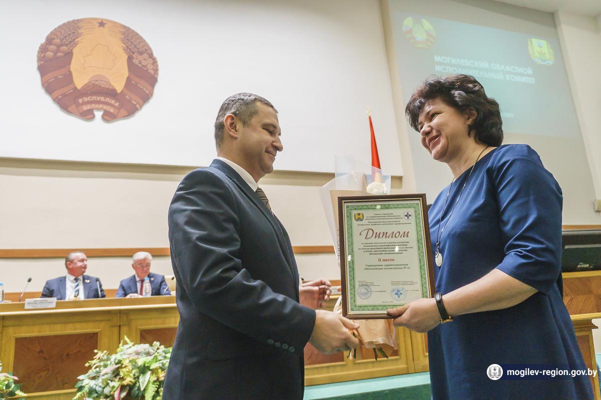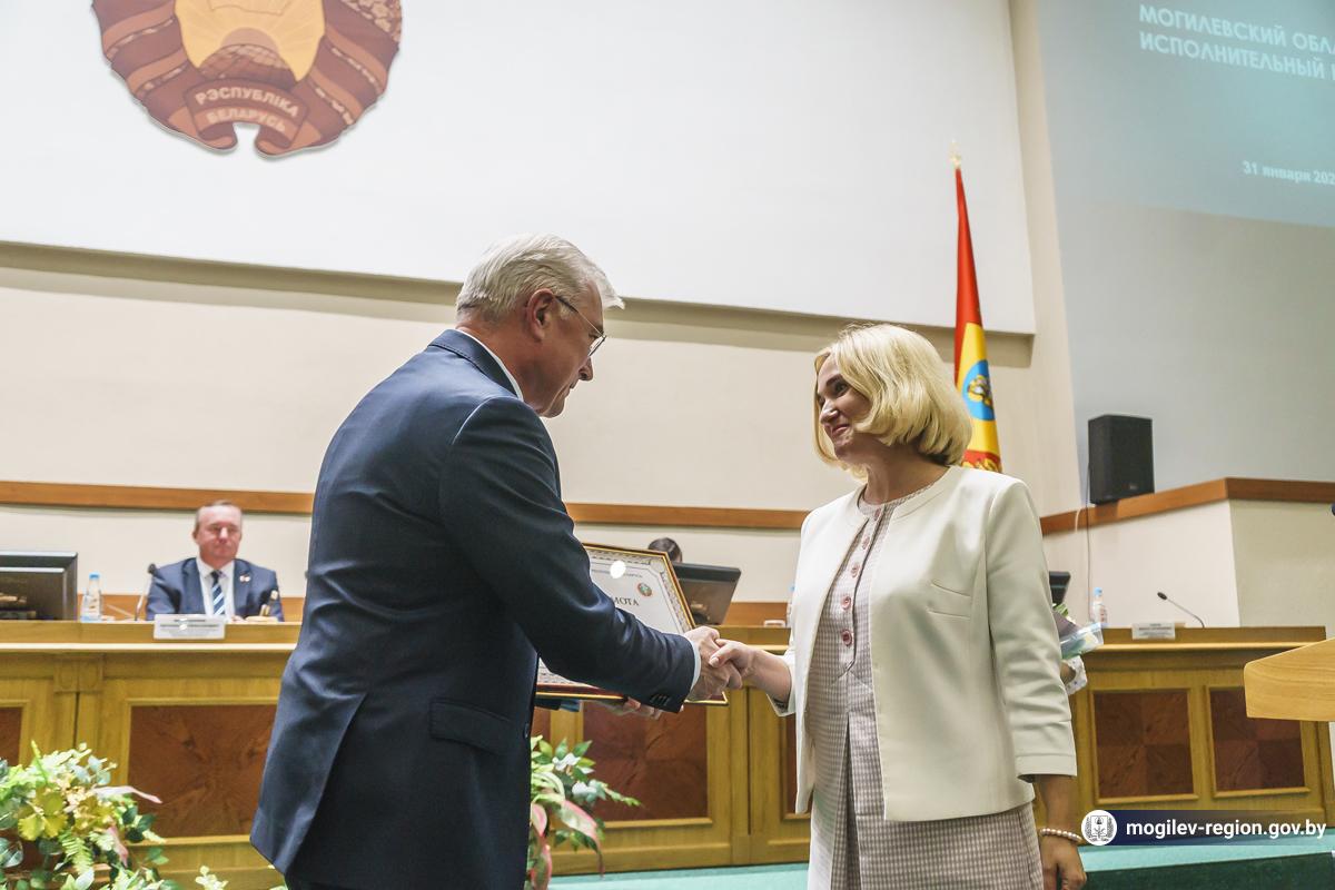 Итоговая коллегия главного управления по здравоохранению Могилевского облисполкома прошла сегодня в областном центре. В заседании приняли участие помощник Президента - инспектор по Могилевской области Леонид Мартынюк, заместитель председателя облисполкома Валерий Малашко, начальник главного управления по здравоохранению облисполкома Александр Старовойтов, главный государственный санитарный врач Могилевской области Светлана Нечай, представители сферы здравоохранения и образования Могилевской области. Во время заседания в облисполкоме не только подвели итоги работы за прошедший год, но и наградили лучших сотрудников сферы здравоохранения.
