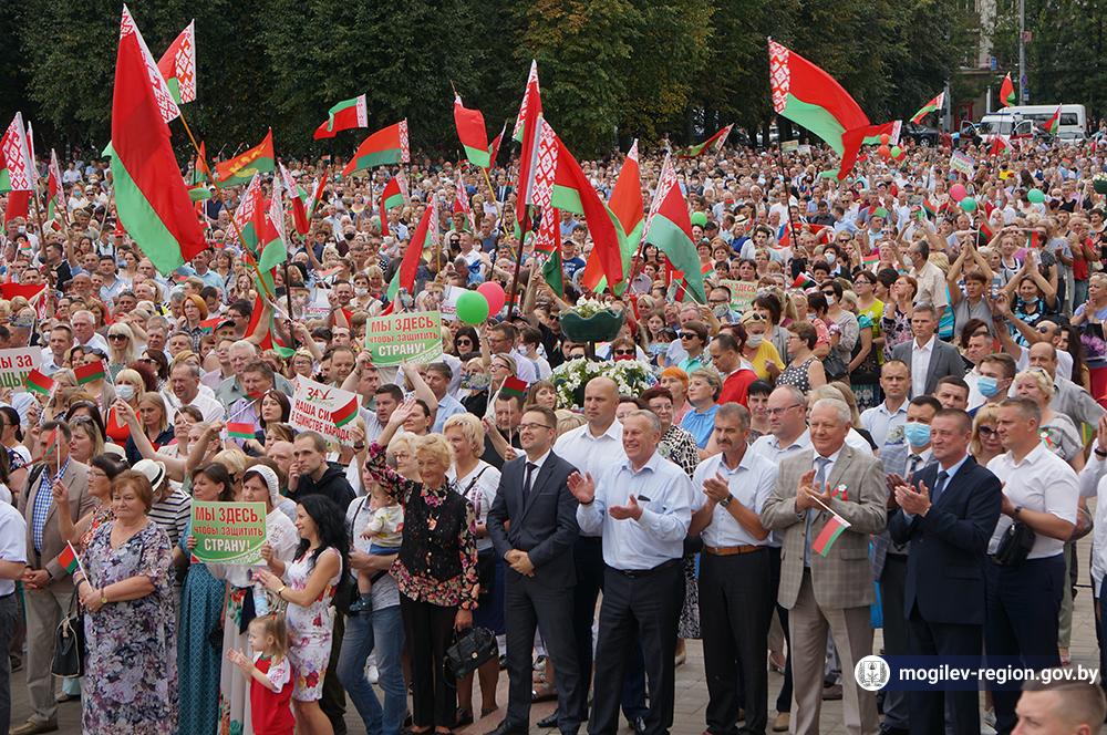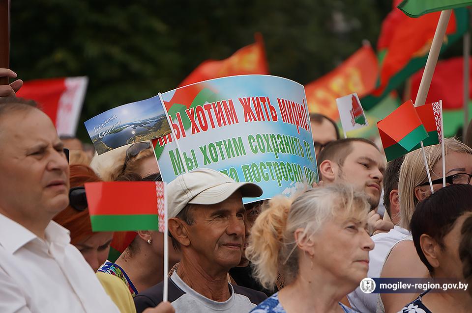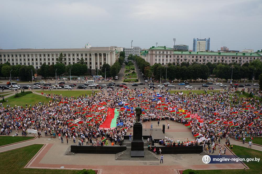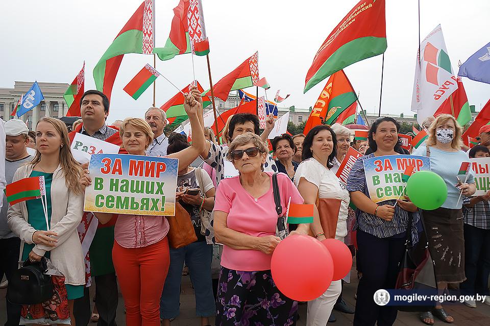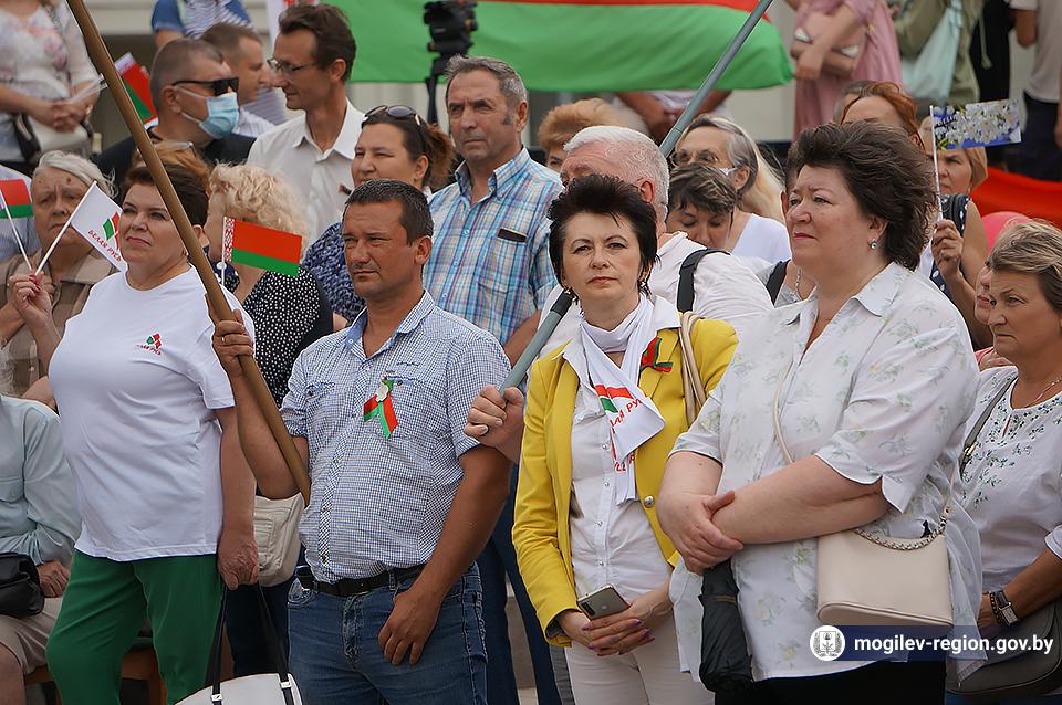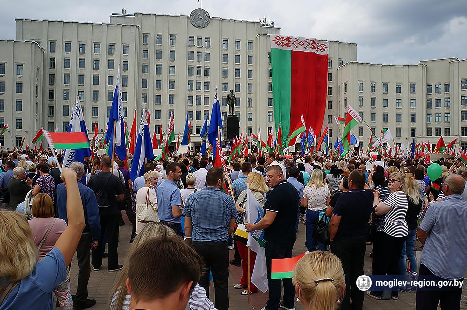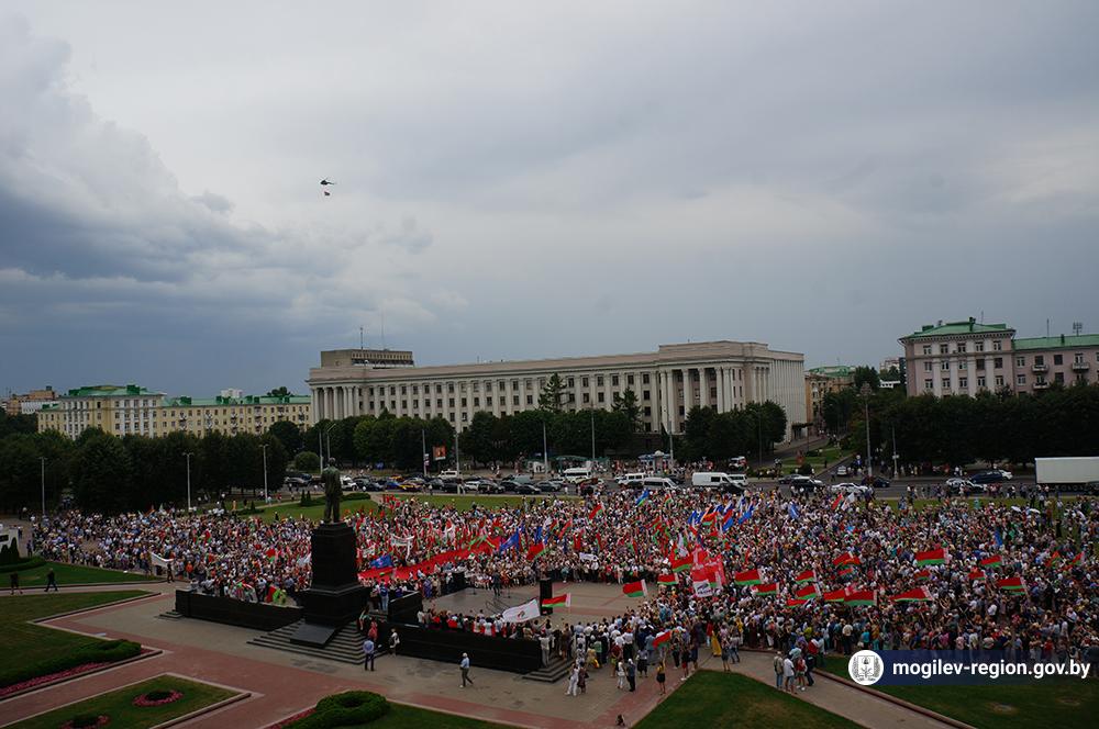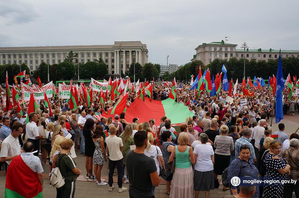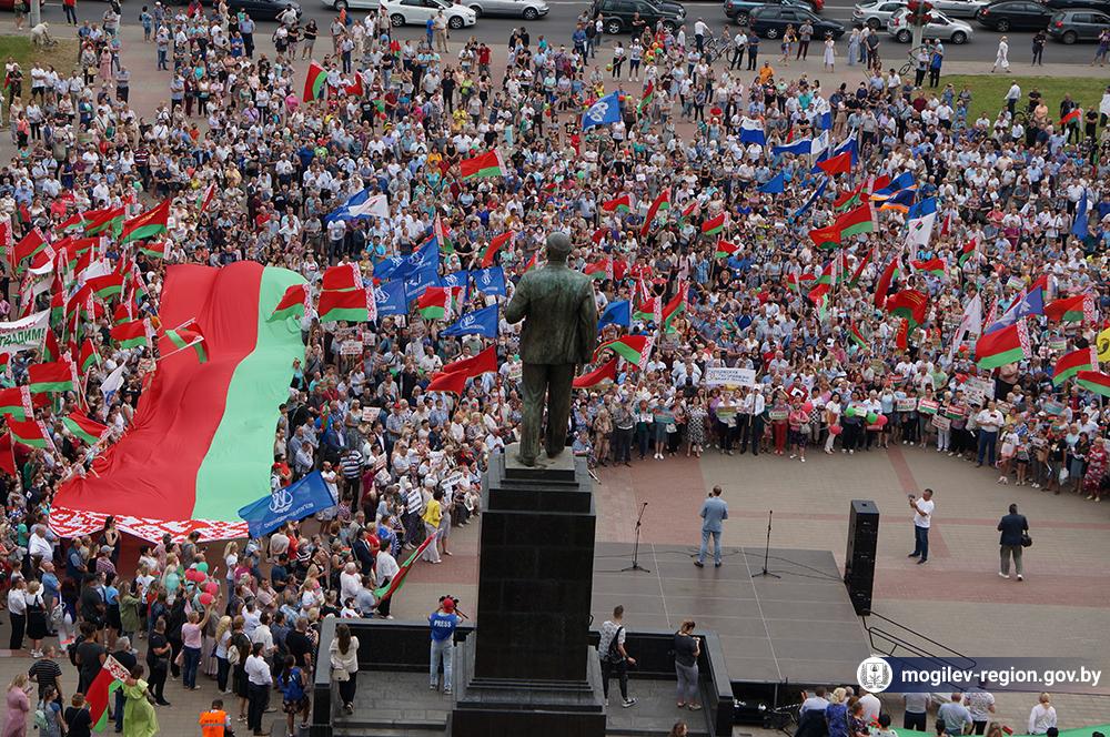 На площади Ленина в Могилеве 18 августа состоялся митинг в поддержку мира, безопасности и спокойствия в Беларуси. Представители органов исполнительной власти, политических партий, общественных организаций и трудовых коллективов, а также многочисленные неравнодушные жители областного центра вышли к Дому Советов, чтобы выразить поддержку государственному курсу страны.
