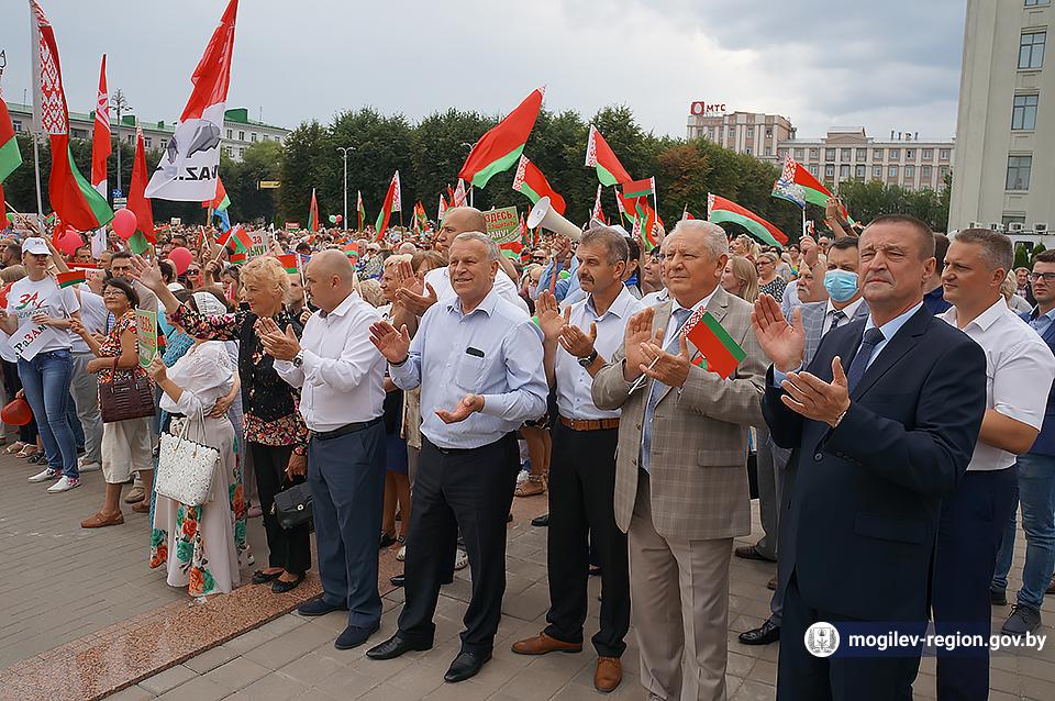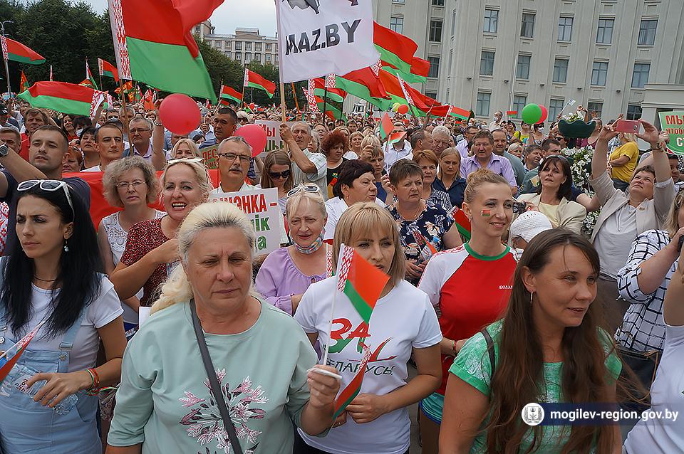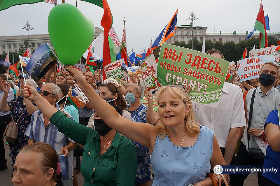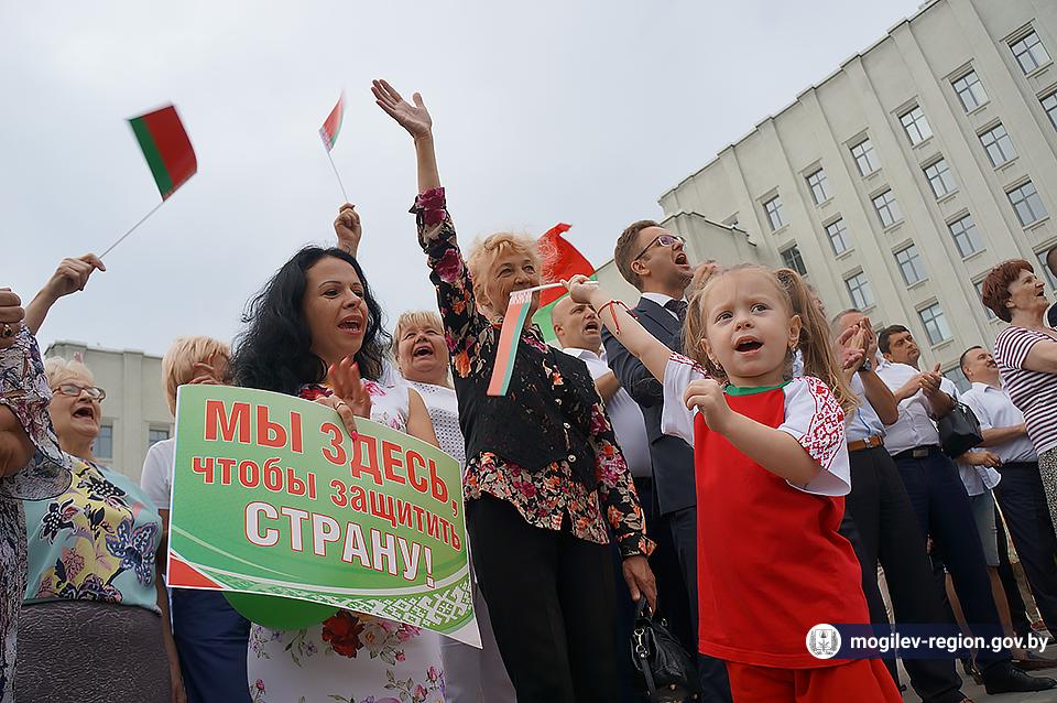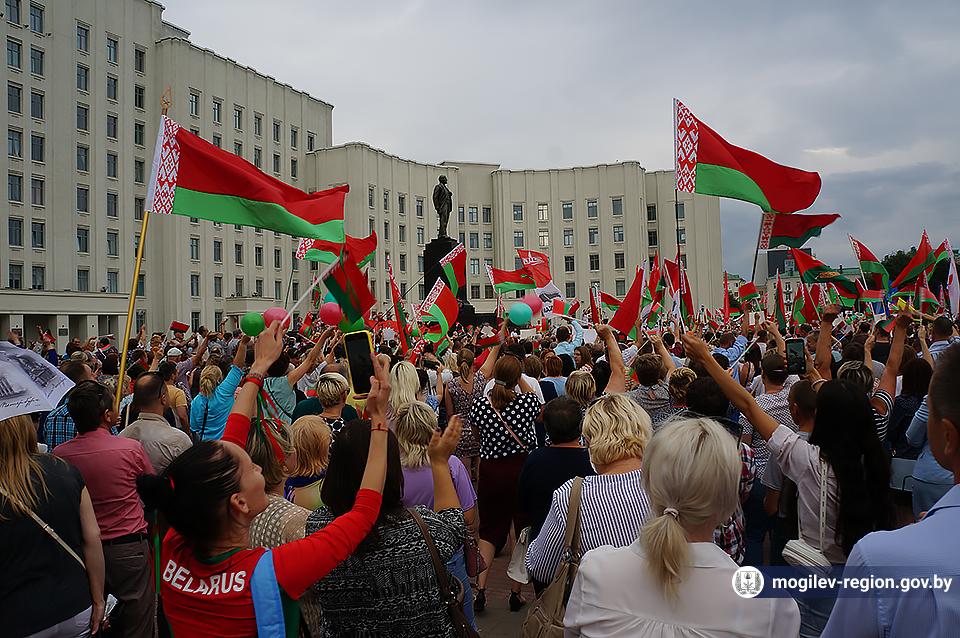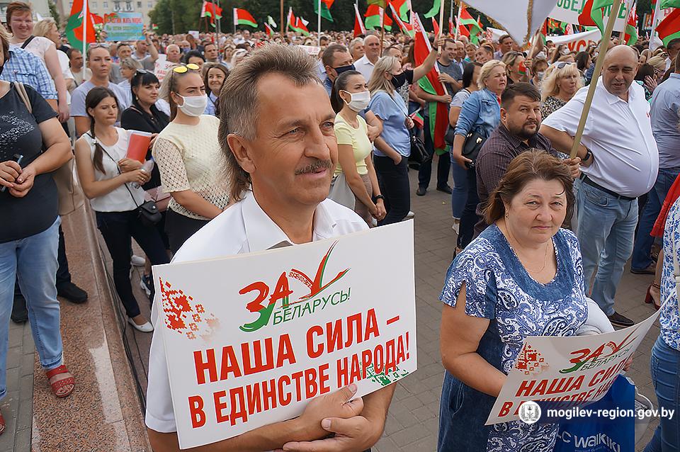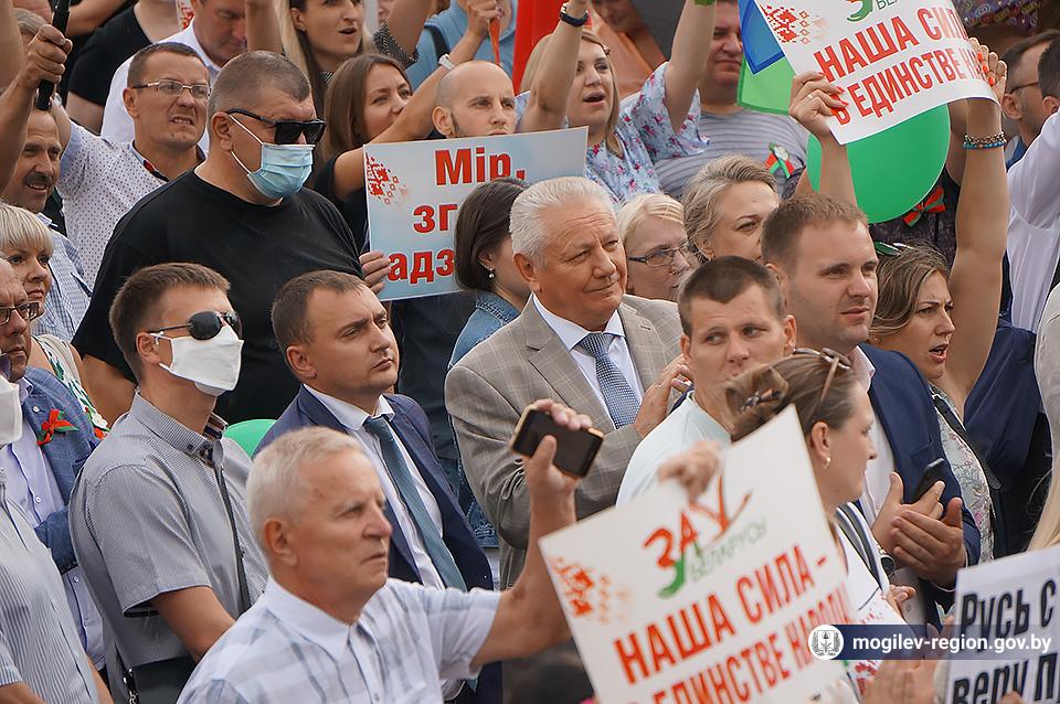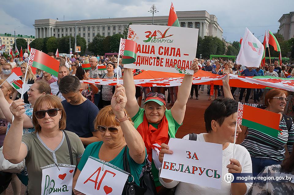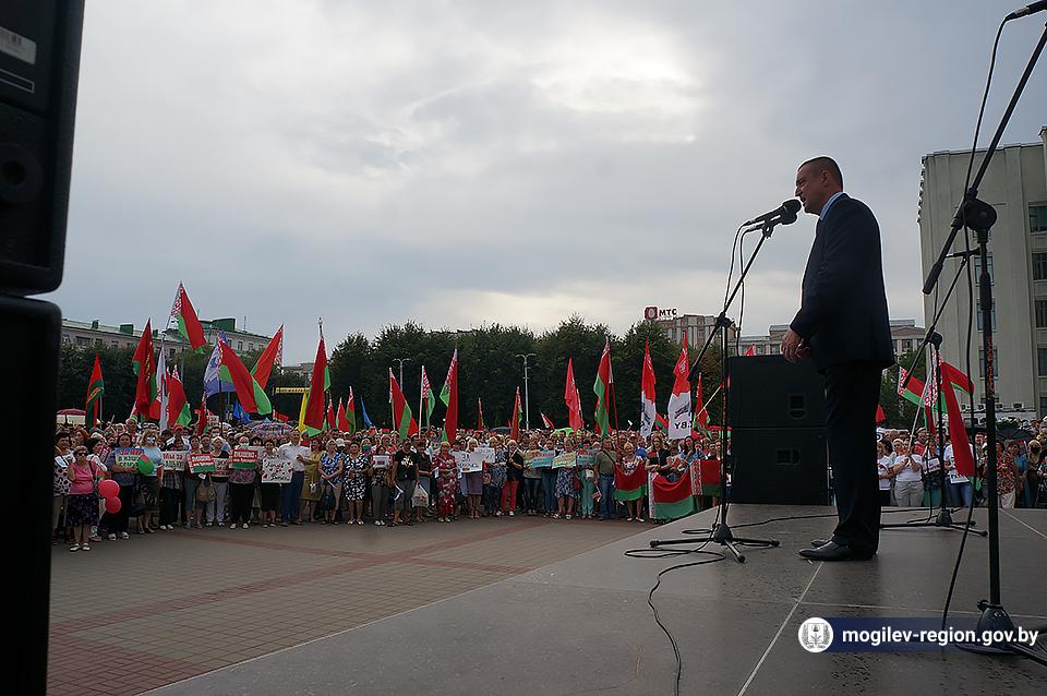 На площади Ленина в Могилеве 18 августа состоялся митинг в поддержку мира, безопасности и спокойствия в Беларуси. Представители органов исполнительной власти, политических партий, общественных организаций и трудовых коллективов, а также многочисленные неравнодушные жители областного центра вышли к Дому Советов, чтобы выразить поддержку государственному курсу страны.