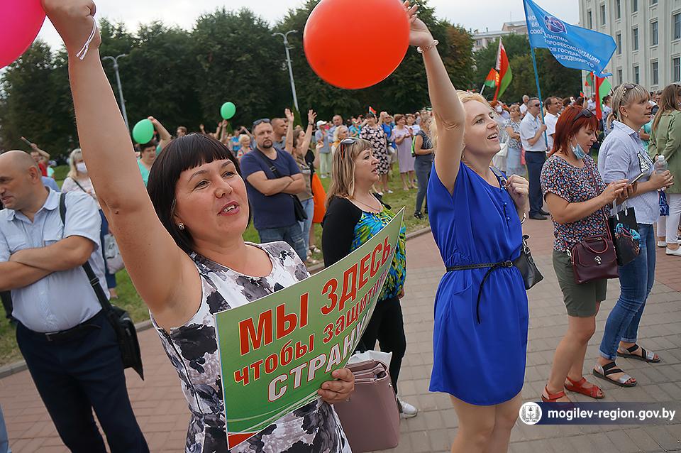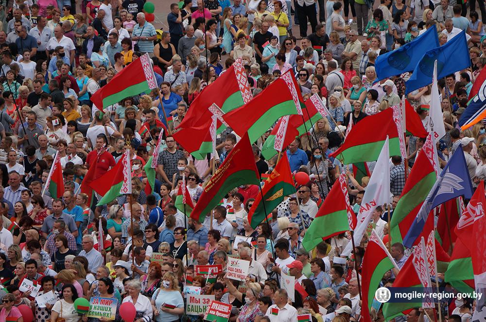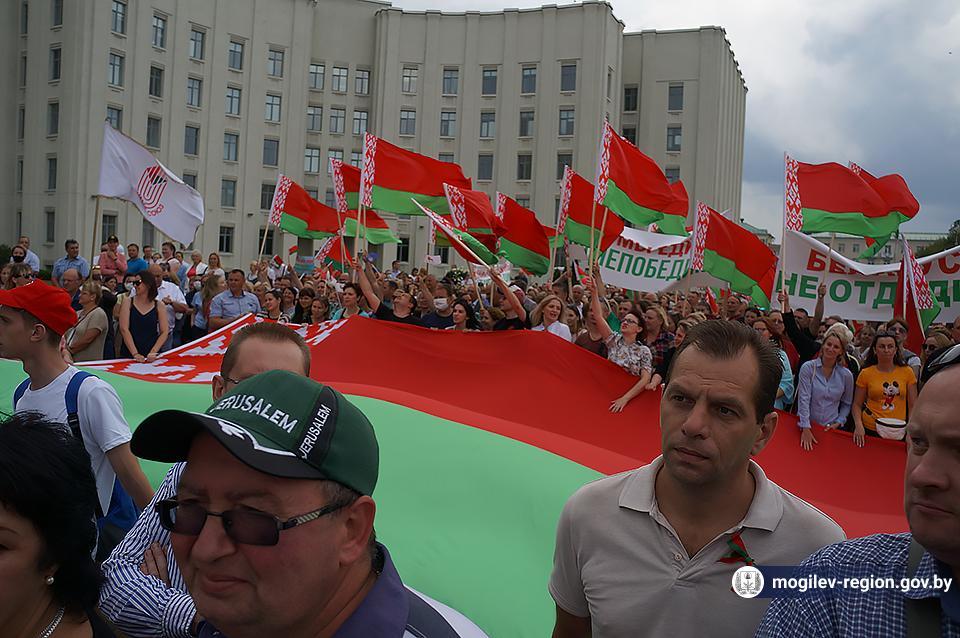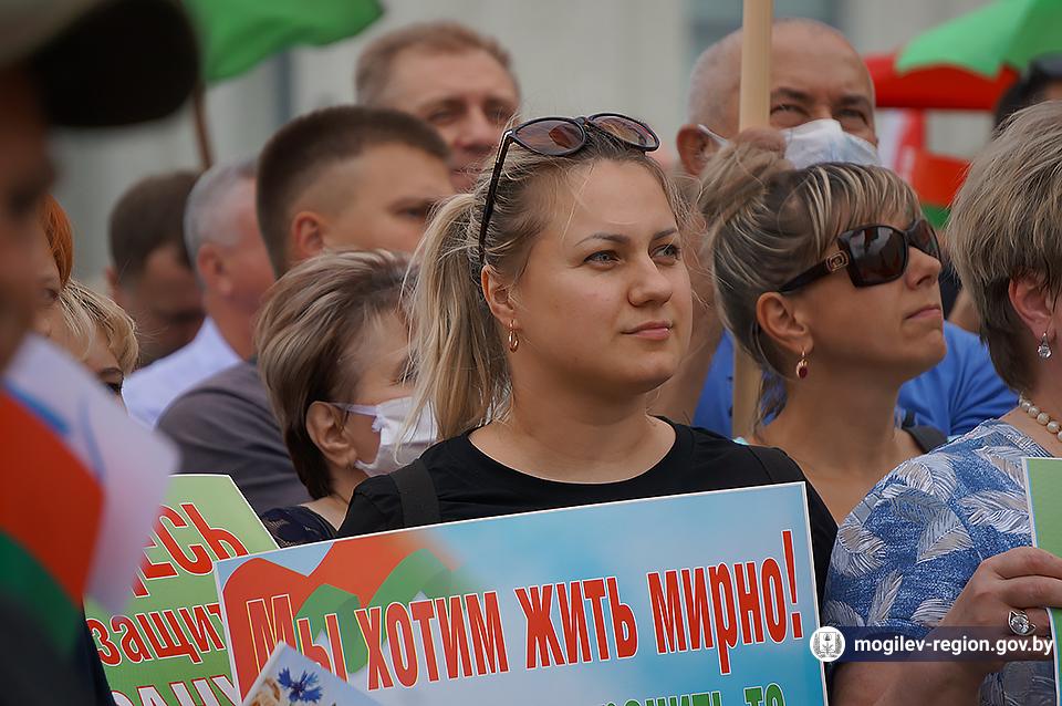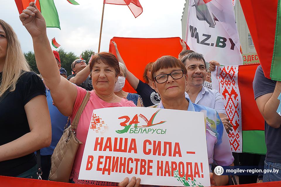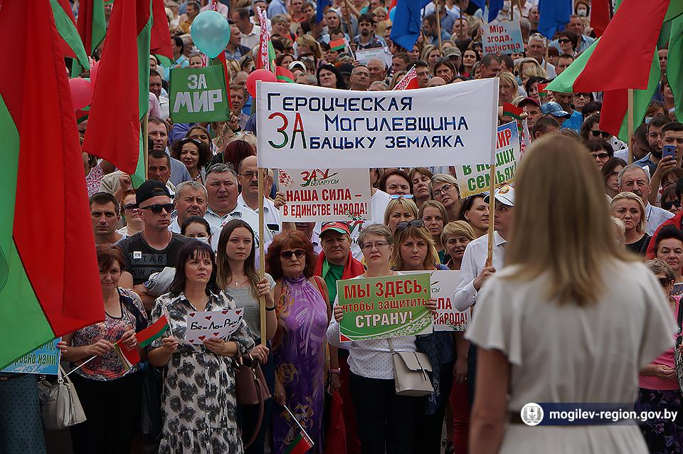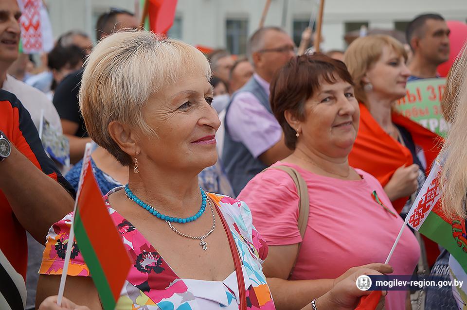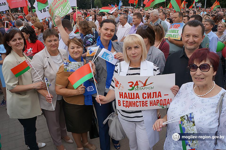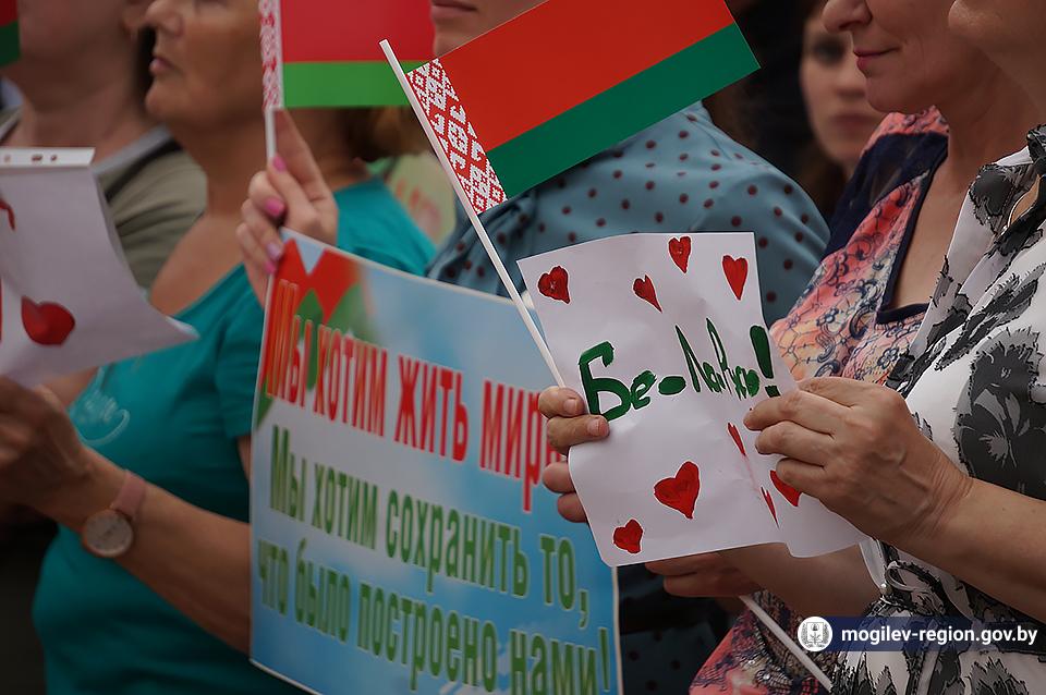 На площади Ленина в Могилеве 18 августа состоялся митинг в поддержку мира, безопасности и спокойствия в Беларуси. Представители органов исполнительной власти, политических партий, общественных организаций и трудовых коллективов, а также многочисленные неравнодушные жители областного центра вышли к Дому Советов, чтобы выразить поддержку государственному курсу страны.