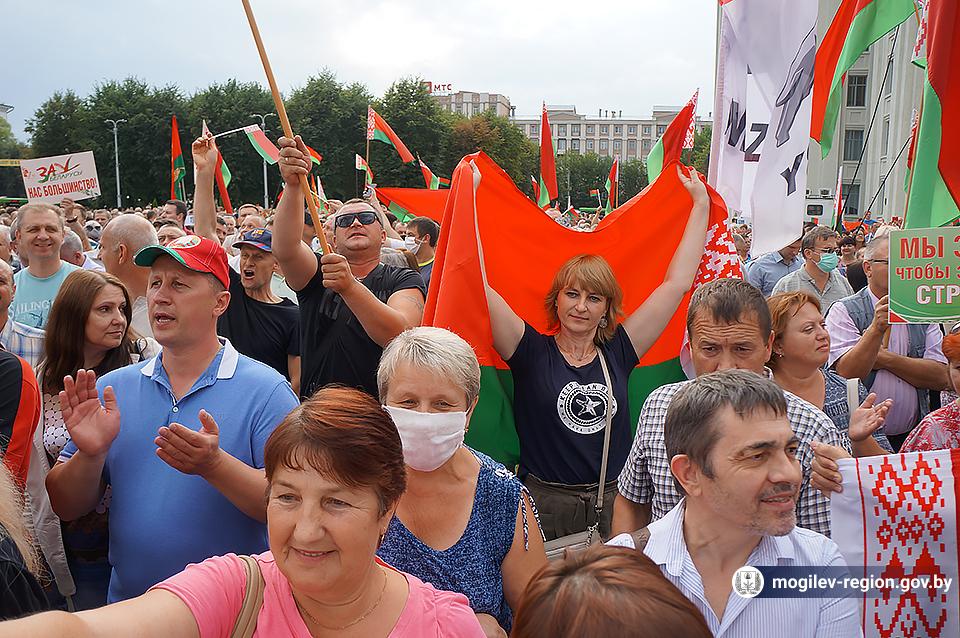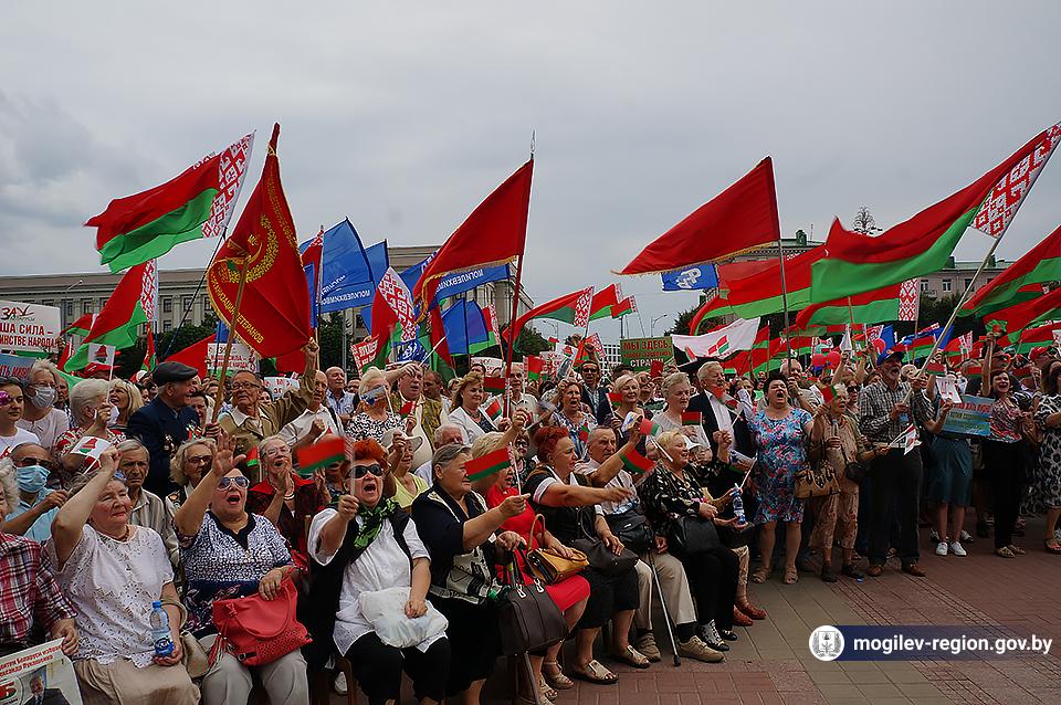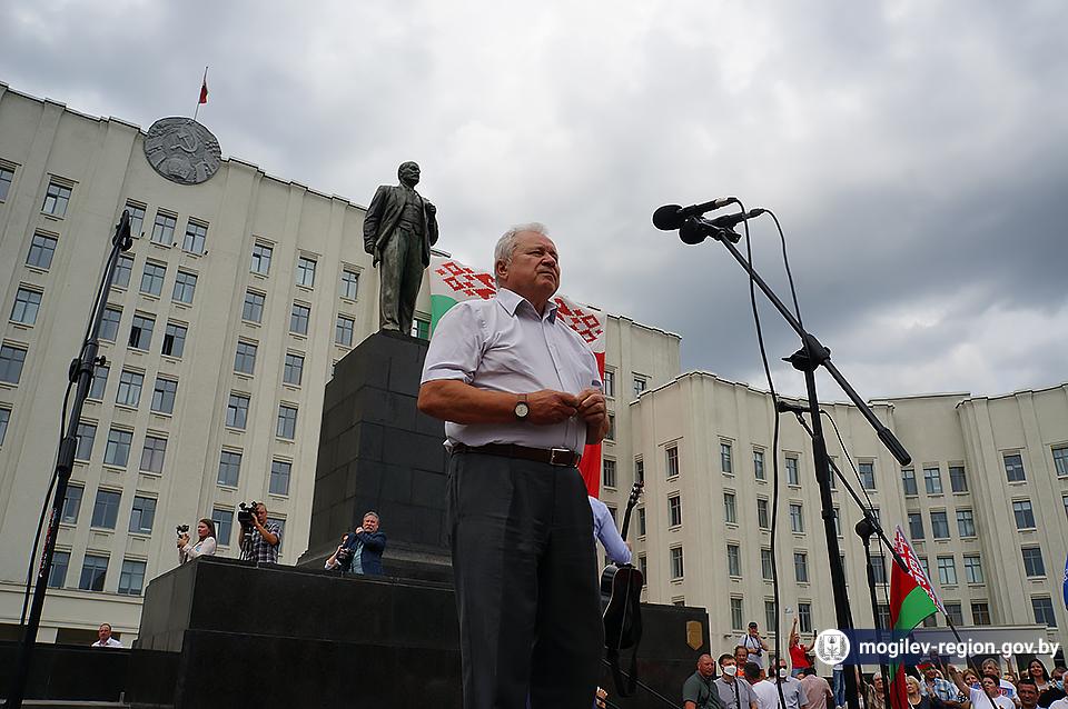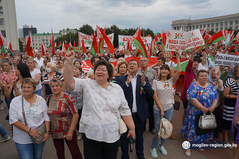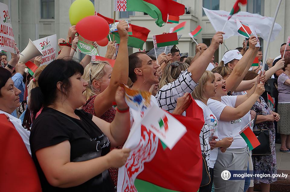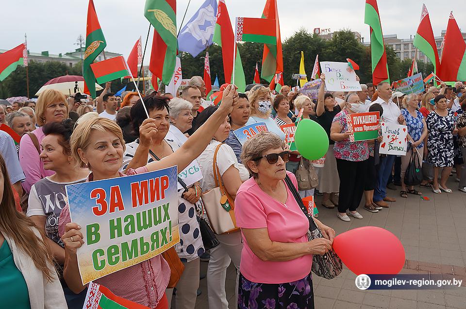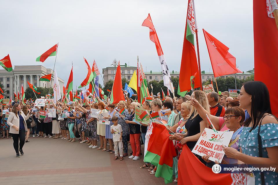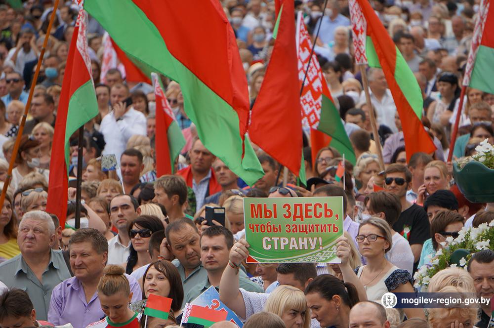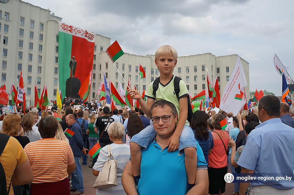 На площади Ленина в Могилеве 18 августа состоялся митинг в поддержку мира, безопасности и спокойствия в Беларуси. Представители органов исполнительной власти, политических партий, общественных организаций и трудовых коллективов, а также многочисленные неравнодушные жители областного центра вышли к Дому Советов, чтобы выразить поддержку государственному курсу страны.