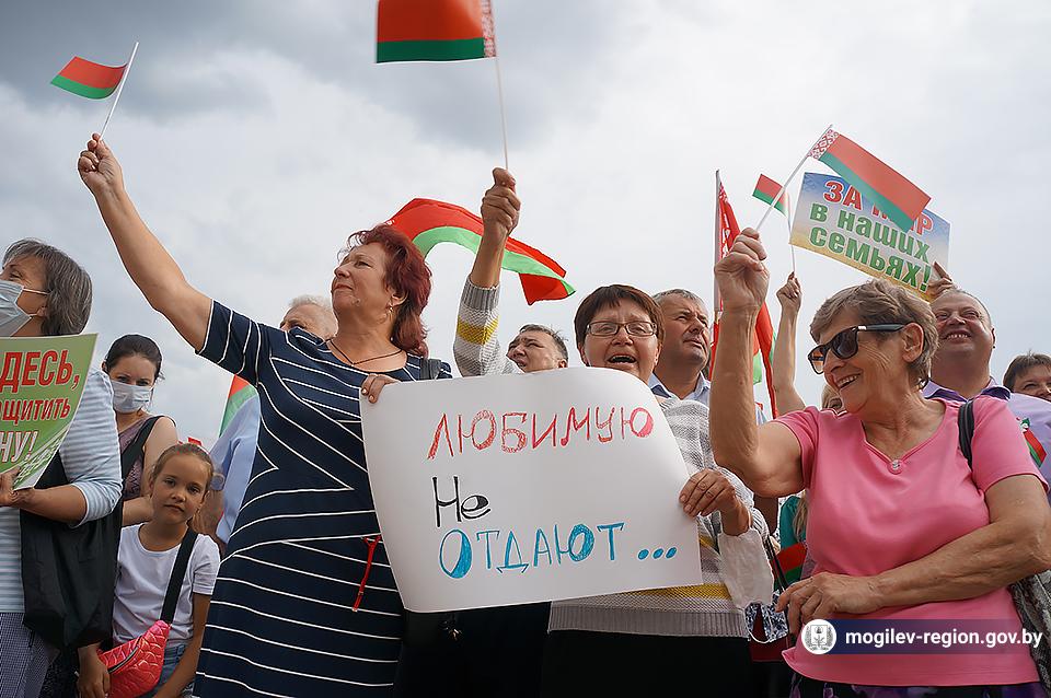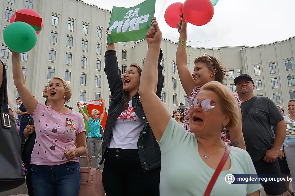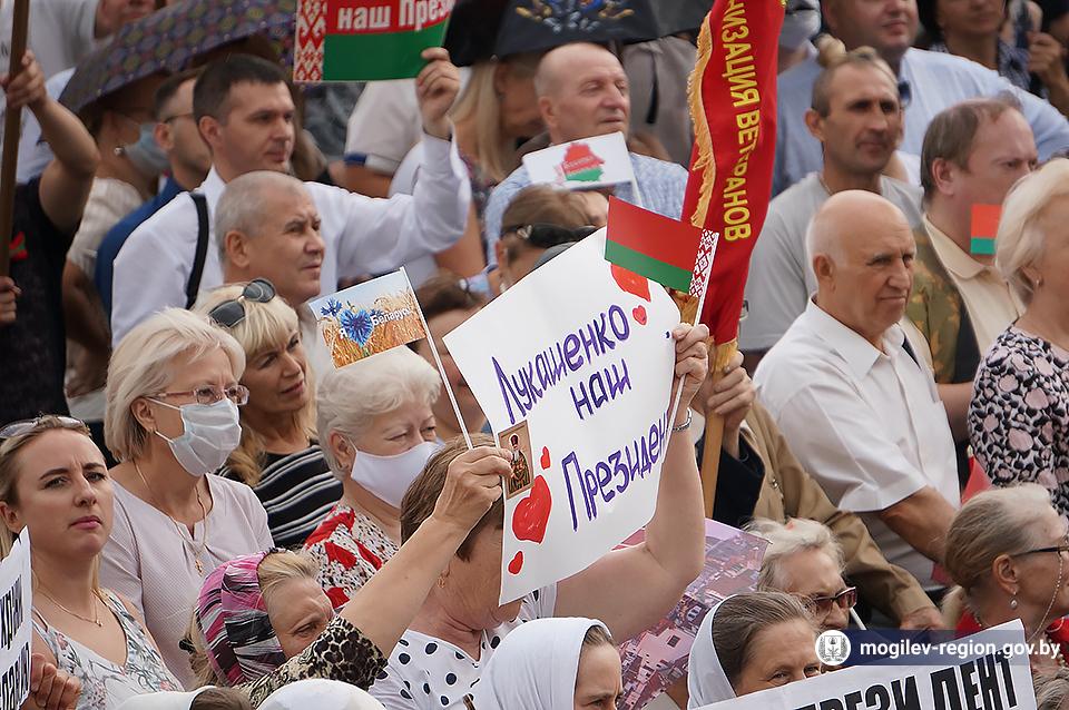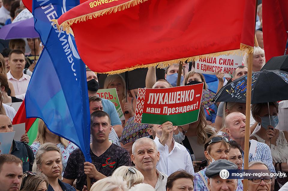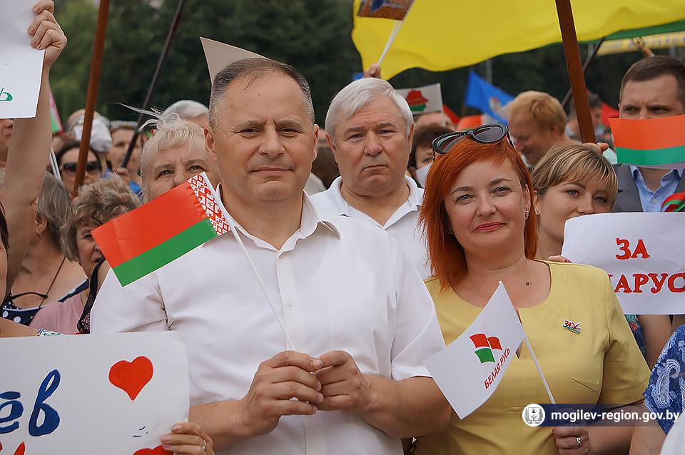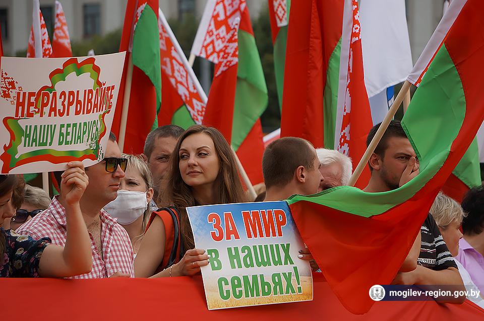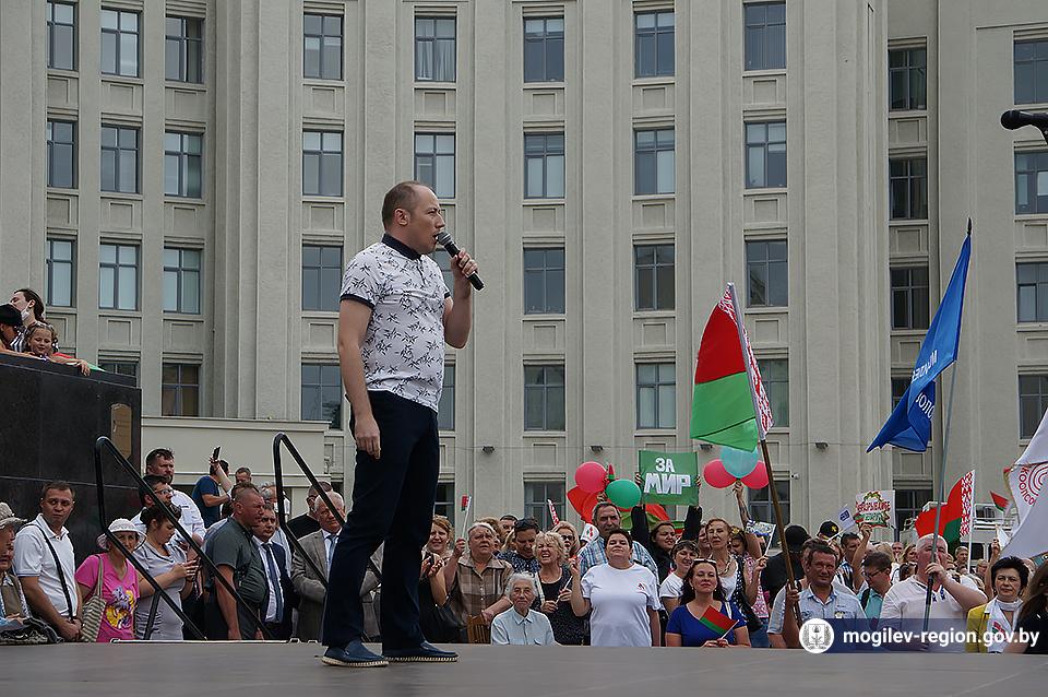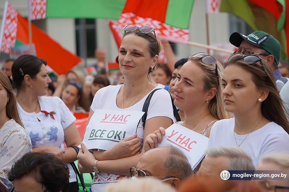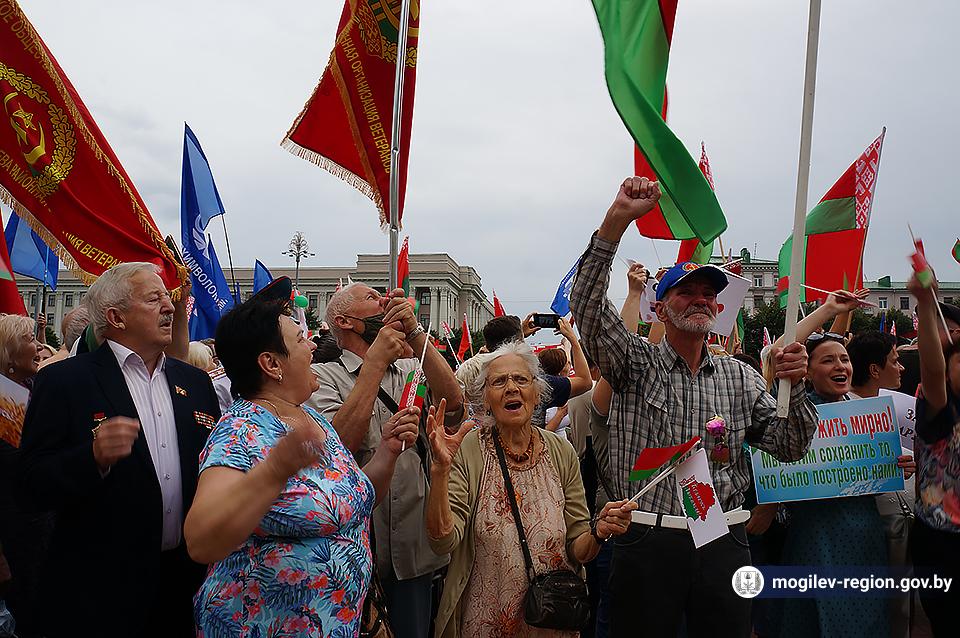 На площади Ленина в Могилеве 18 августа состоялся митинг в поддержку мира, безопасности и спокойствия в Беларуси. Представители органов исполнительной власти, политических партий, общественных организаций и трудовых коллективов, а также многочисленные неравнодушные жители областного центра вышли к Дому Советов, чтобы выразить поддержку государственному курсу страны.