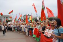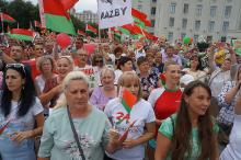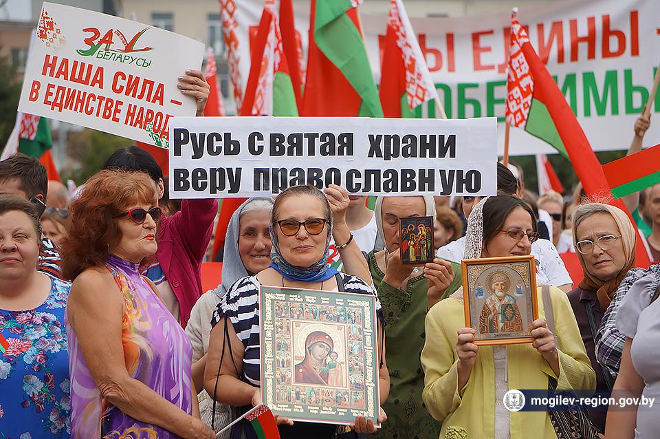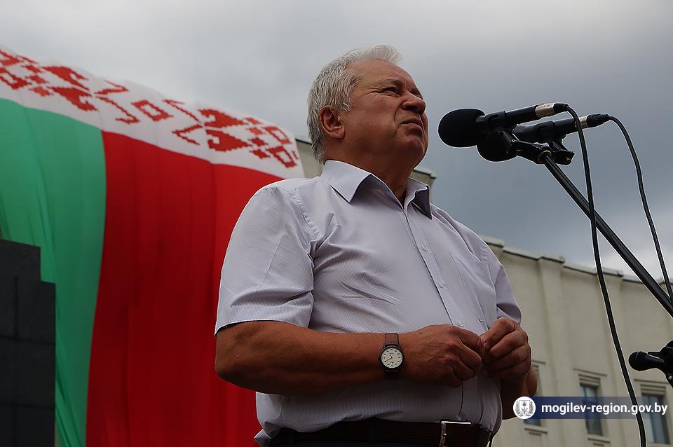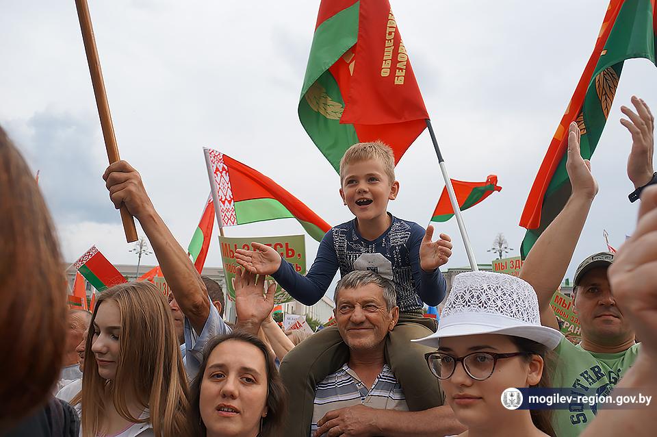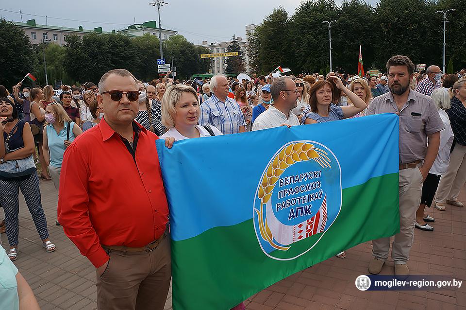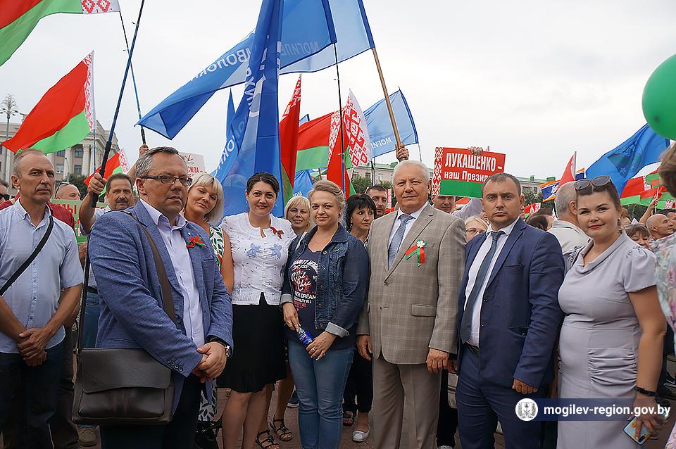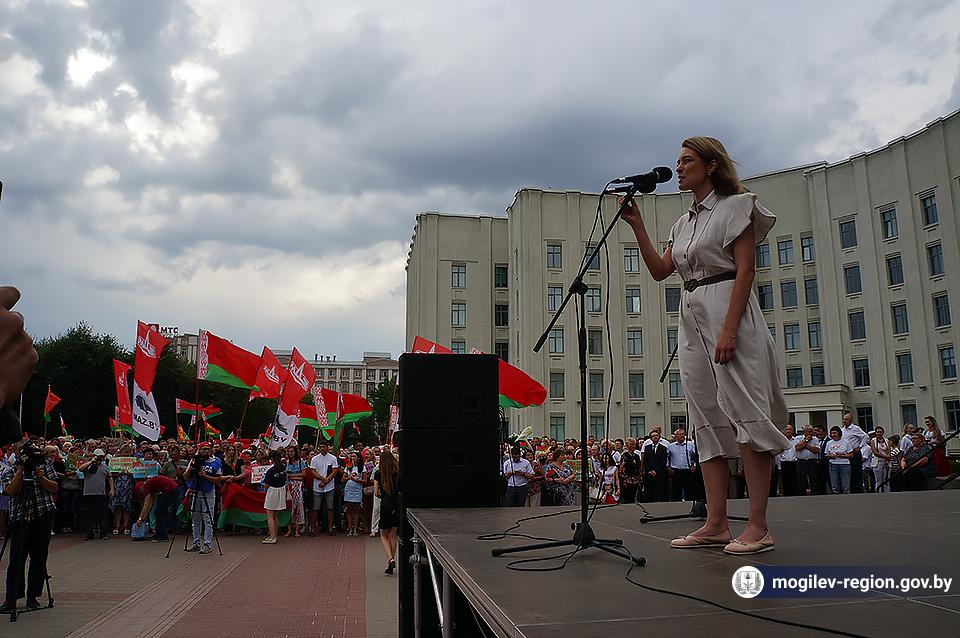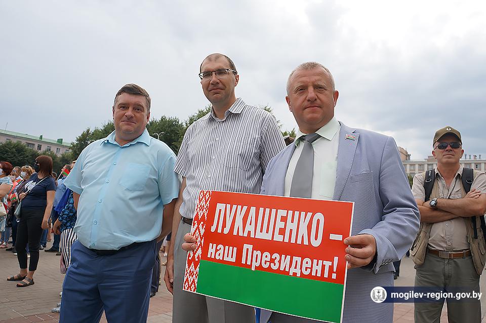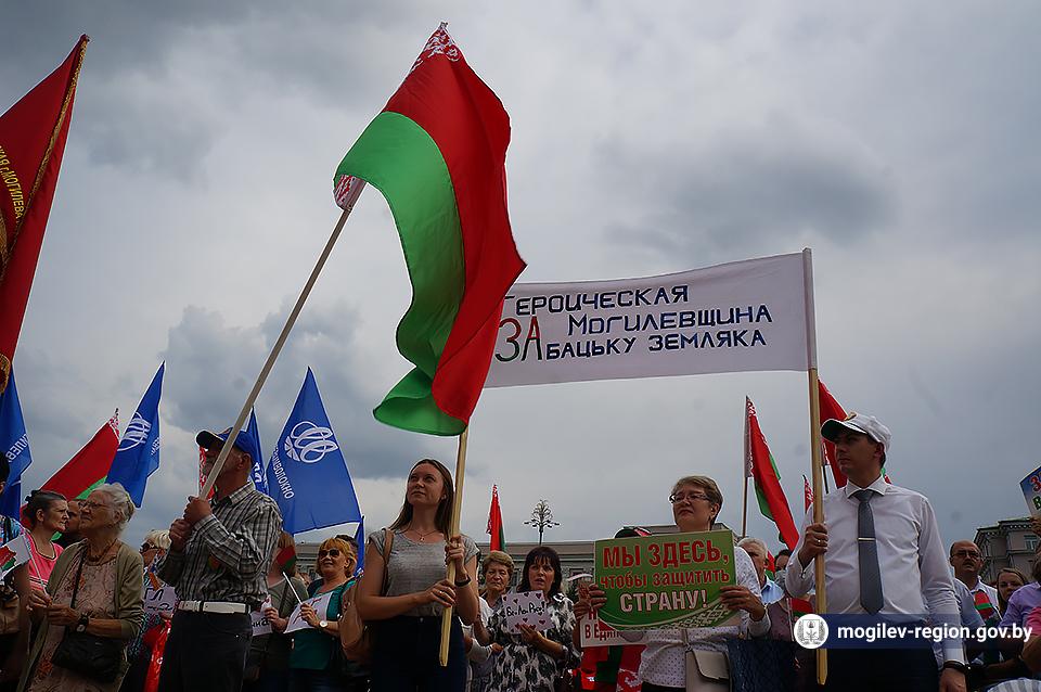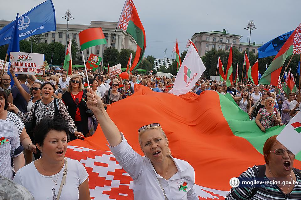 На площади Ленина в Могилеве 18 августа состоялся митинг в поддержку мира, безопасности и спокойствия в Беларуси. Представители органов исполнительной власти, политических партий, общественных организаций и трудовых коллективов, а также многочисленные неравнодушные жители областного центра вышли к Дому Советов, чтобы выразить поддержку государственному курсу страны.