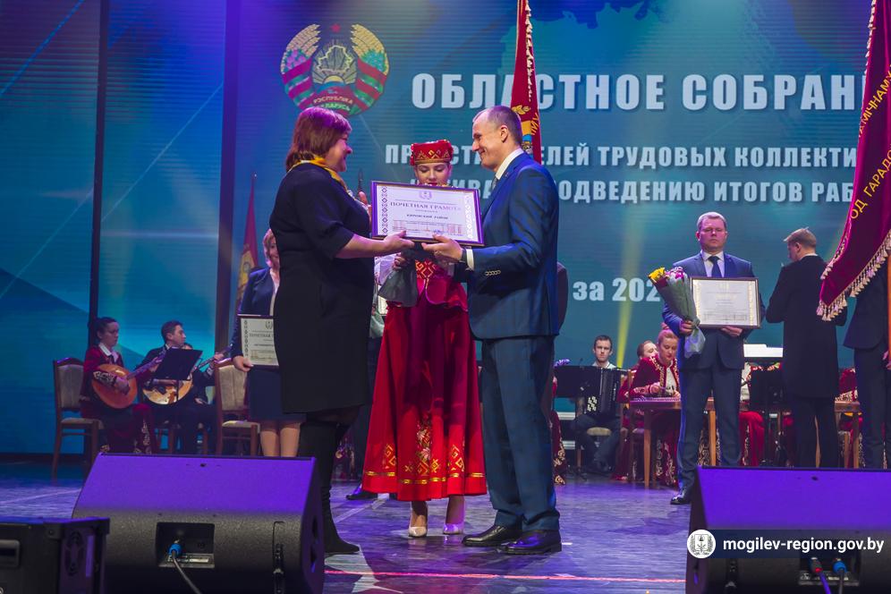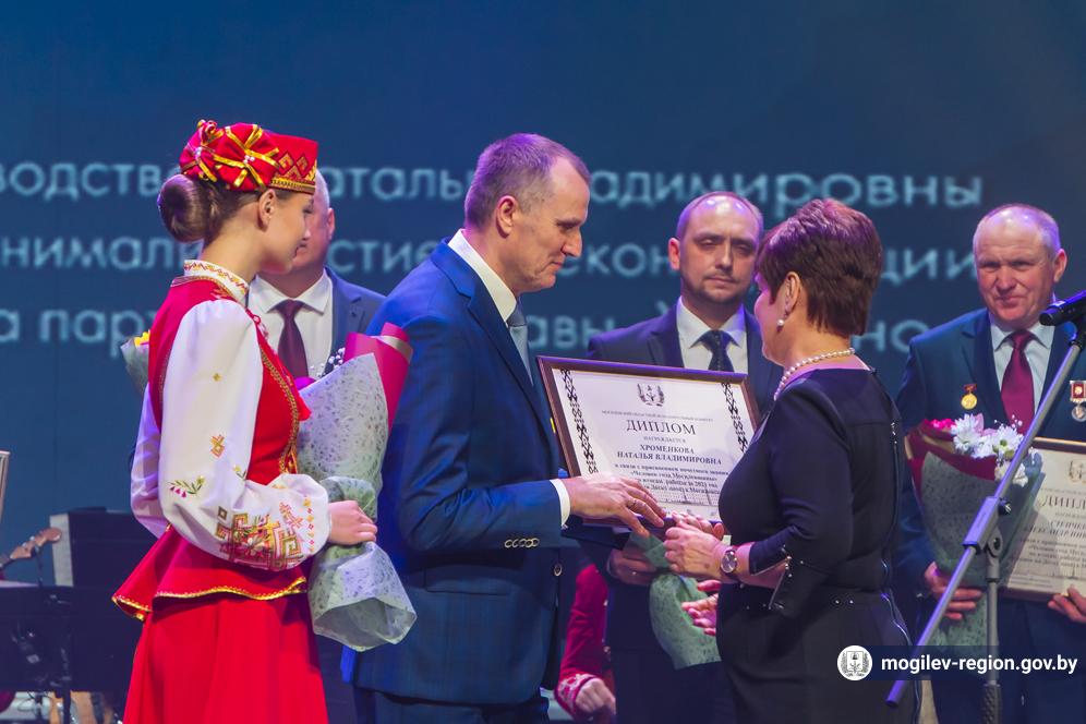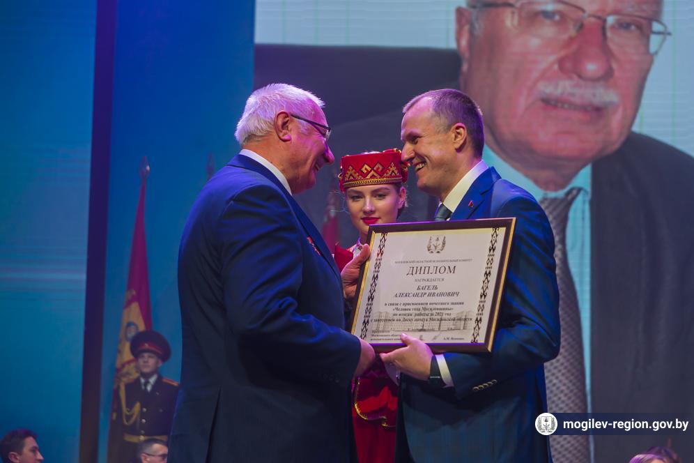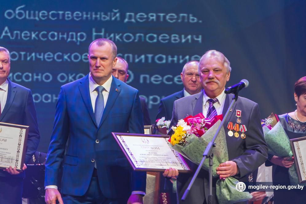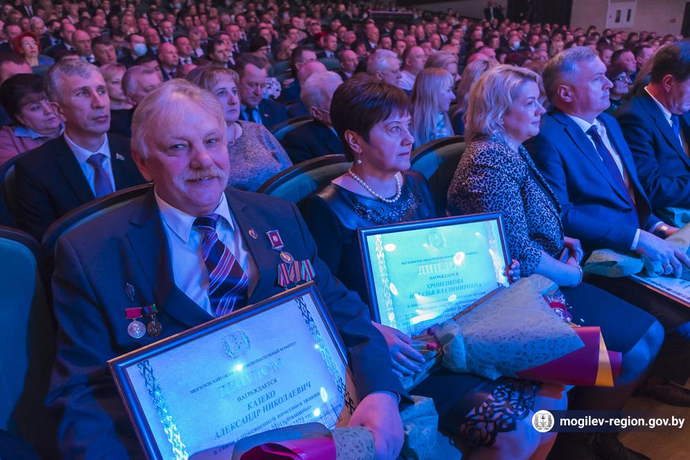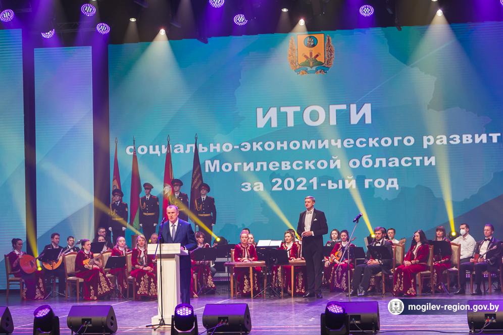 В Могилеве в торжественной обстановке состоялось подведение итогов социально-экономического развития Могилевской области за 2021 год. Председатель Могилевского облисполкома Анатолий Исаченко вручил переходящее знамя, дипломы и денежные премии победителям соревнования, а также заслуженные награды 15 обладателям почетного звания «Человек года Могилевщины».