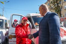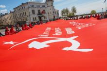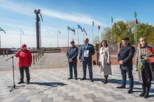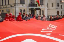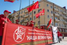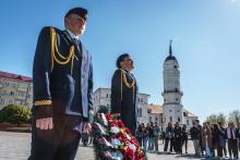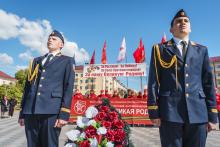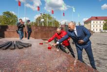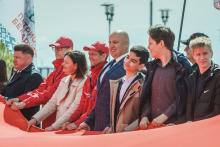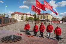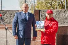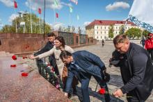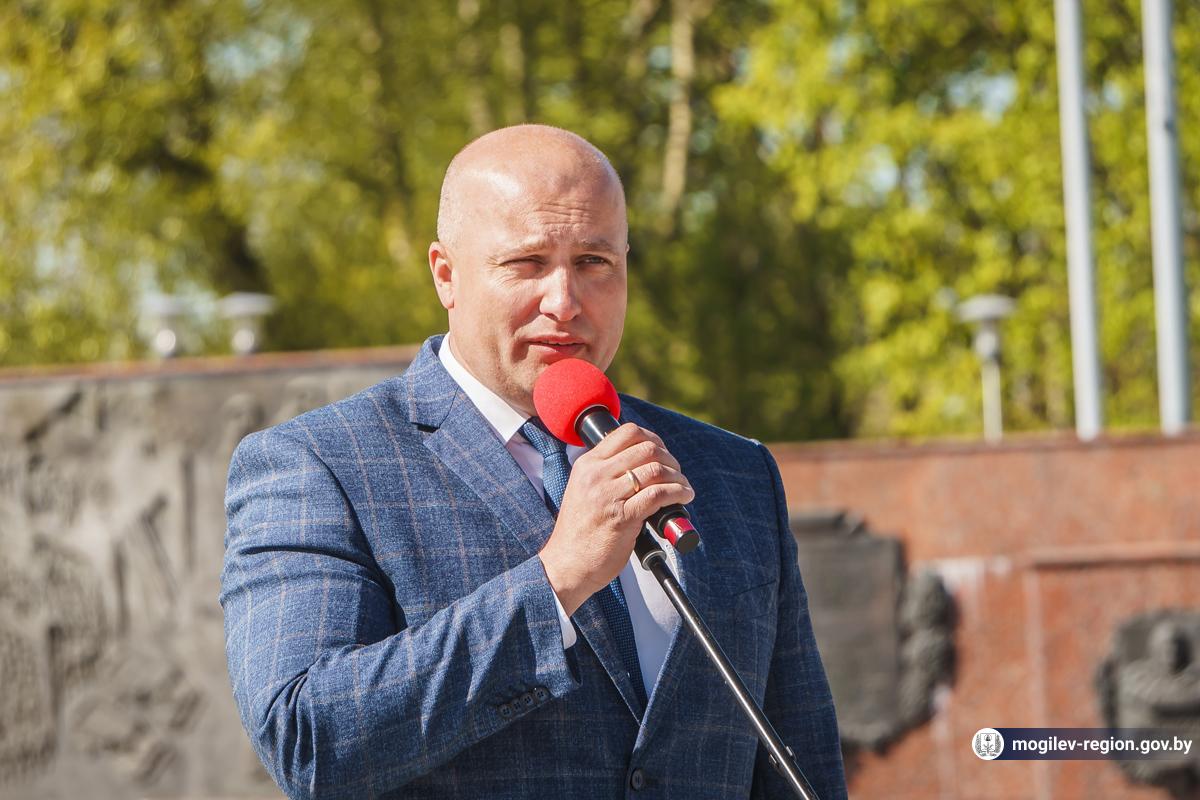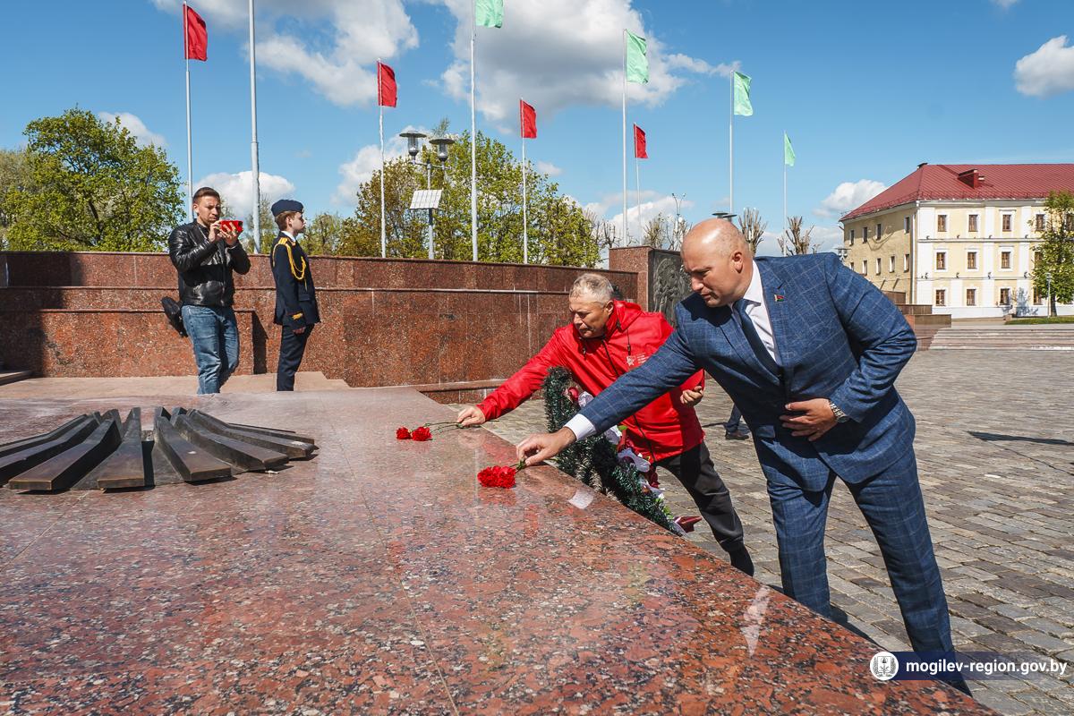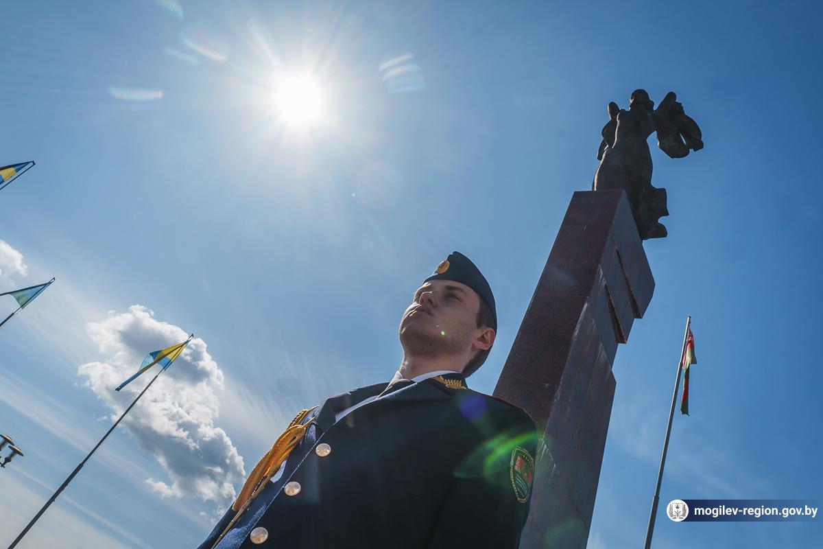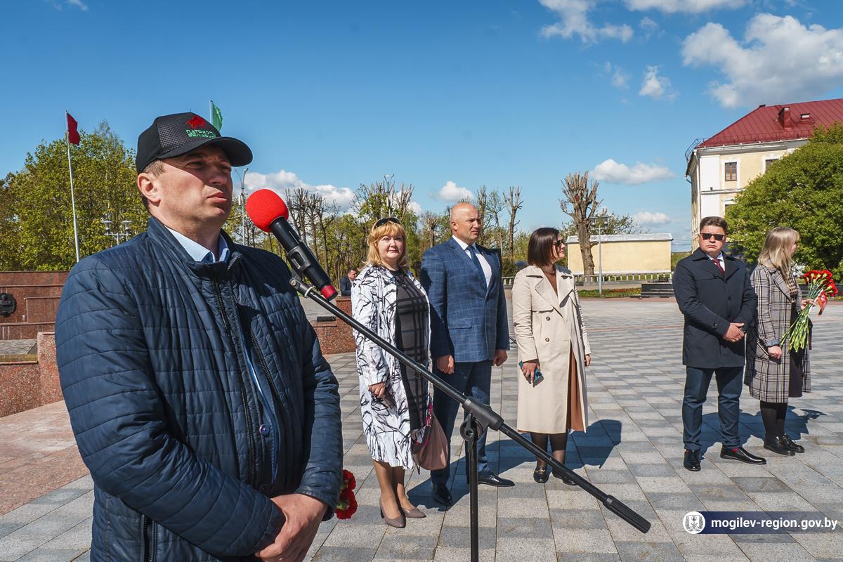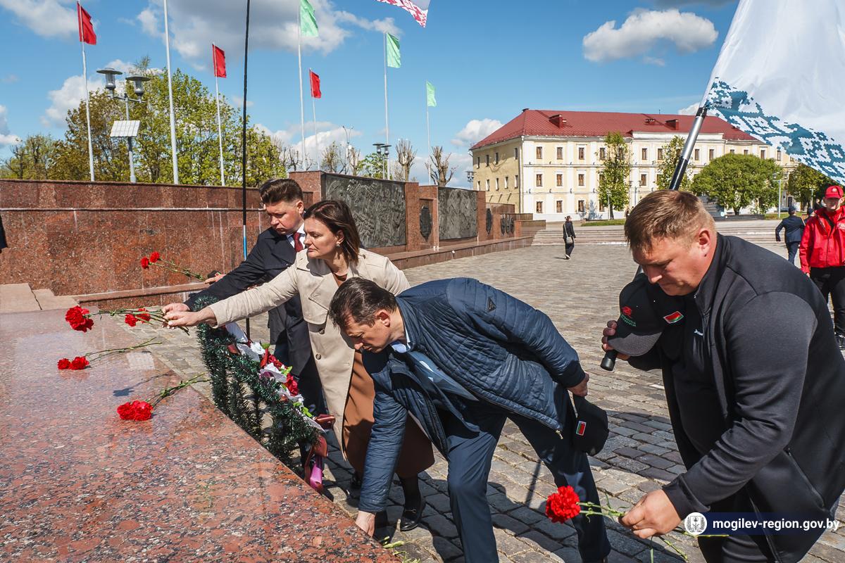 В Могилев прибыли участники союзного патриотического марша-эстафеты проекта «Наша великая Родина», посвященного 78-й годовщине Победы. В ходе визита российских гостей на площади Славы состоялся митинг с участием руководства Могилева. Председатель Могилевского городского Совета депутатов Максим Гурин вручил координатору проекта Олегу Слюсаренко памятную книгу о городе. После возложения цветов к Вечному огню, прибывшие гости совместно с могилевчанами развернули главный символ «Союзного проекта» - масштабную копию Знамени Победы.