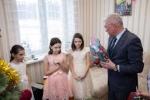 В рамках акции «Наши дети» заместитель председателя Могилевского облисполкома Валерий Малашко посетил семью Коноваленко в агрогородке Городец Шкловского района и вручил детям подарки.