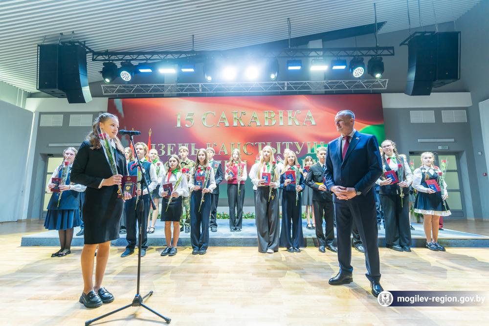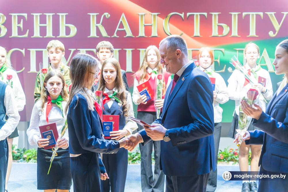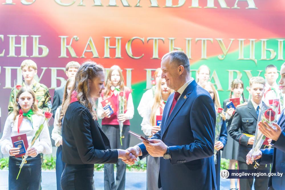 В преддверии Дня Конституции Беларусь в Могилеве прошла Всебелорусская акция «Мы – граждане Беларуси!». Торжественное мероприятие состоялось на знаковом для жителей региона месте – Музее Славы Могилевщины. Председатель Могилевского облисполкома Анатолий Исаченко вручил молодым жителям нашей области – отличникам учебы, победителям предметных олимпиад, спортсменам, активным участникам общественной жизни главный документ – паспорт гражданина Республики Беларусь. Для участников акции сотрудники музея повели экскурсию.