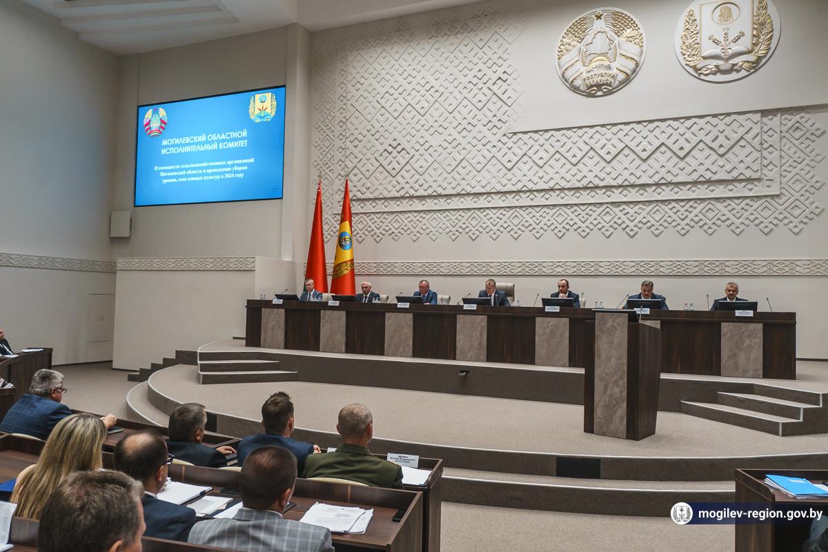 Председатель Могилевского облисполкома Анатолий Исаченко провел заседание облисполкома по вопросам готовности сельскохозяйственных организаций к проведению уборки урожая, сева озимых культур в 2024 году. Во встрече приняли участие помощник Президента - инспектор по Могилевской области Леонид Мартынюк, заместители председателя Могилевского облисполкома, представители облисполкома, председатели горрайисполкомов и их заместители, руководители сельхозорганизаций области.