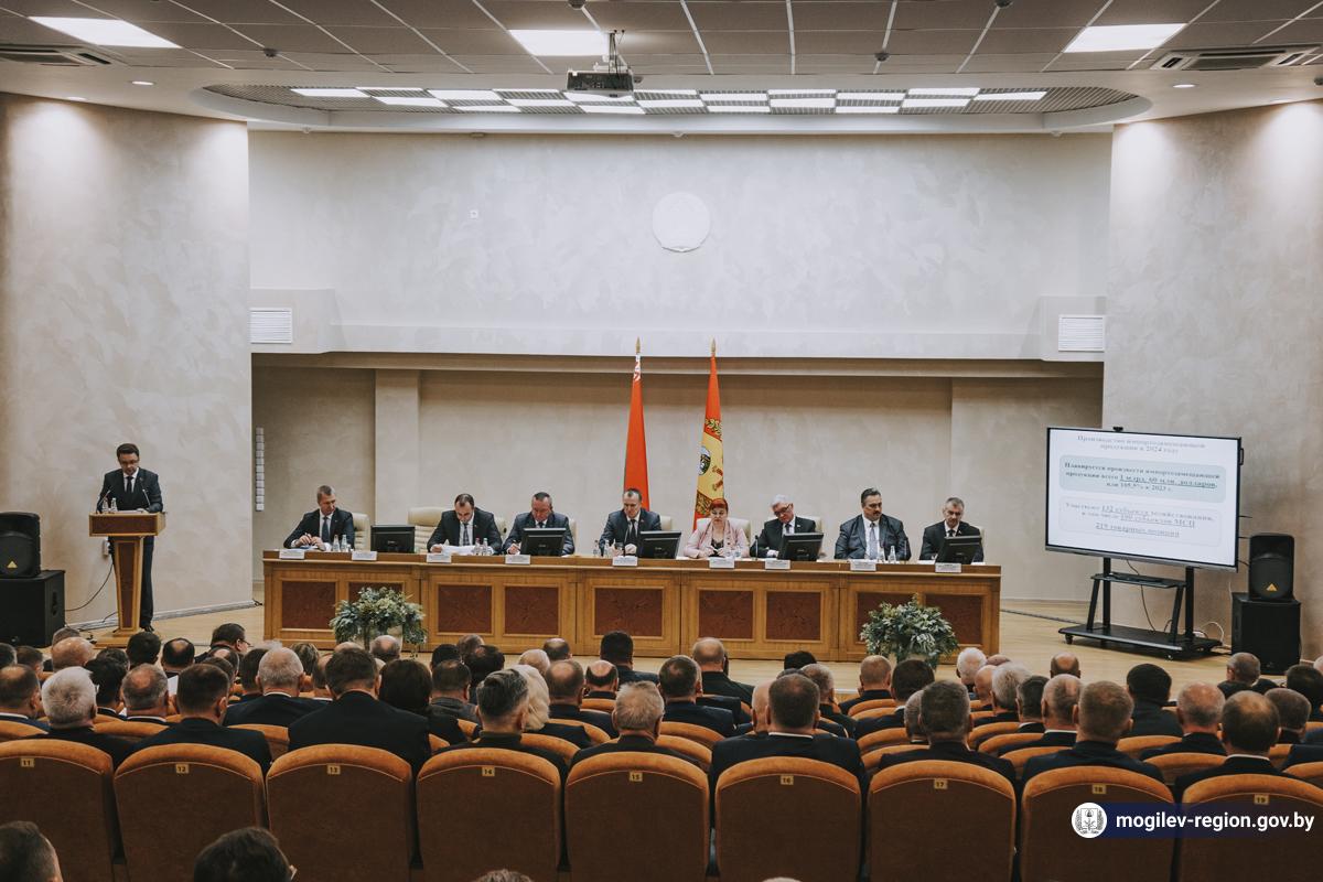 В Могилеве сегодня прошли заседание Могилевского областного исполнительного комитета и очередная пятьдесят вторая сессия Могилевского областного Совета депутатов. Во время встреч обсуждались темы социально-экономического развития Могилевской области и проект областного бюджета в 2024 году. На очередной сессии рассмотрели план работы Могилевского областного Совета депутатов и его органов на первый квартал 2024 года. Заседания прошли при участии помощника Президента – инспектора по Могилевской области Леонида Мартынюка, председателя Могилевского облисполкома Анатолия Исаченко, председателя Могилевского областного Совета депутатов Ирины Раинчик, членов Совета Республики Национального собрания Республики Беларусь, депутатов Палаты представителей Национального собрания Республики Беларусь, членов исполкома, а также председателей горрайисполкомов и горрайсоветов, представителей контрольно-надзорных органов, структурных подразделений облисполкома, руководителей учреждений, предприятий и организаций области, депутатов областного Совета депутатов, представителей общественных объединений.